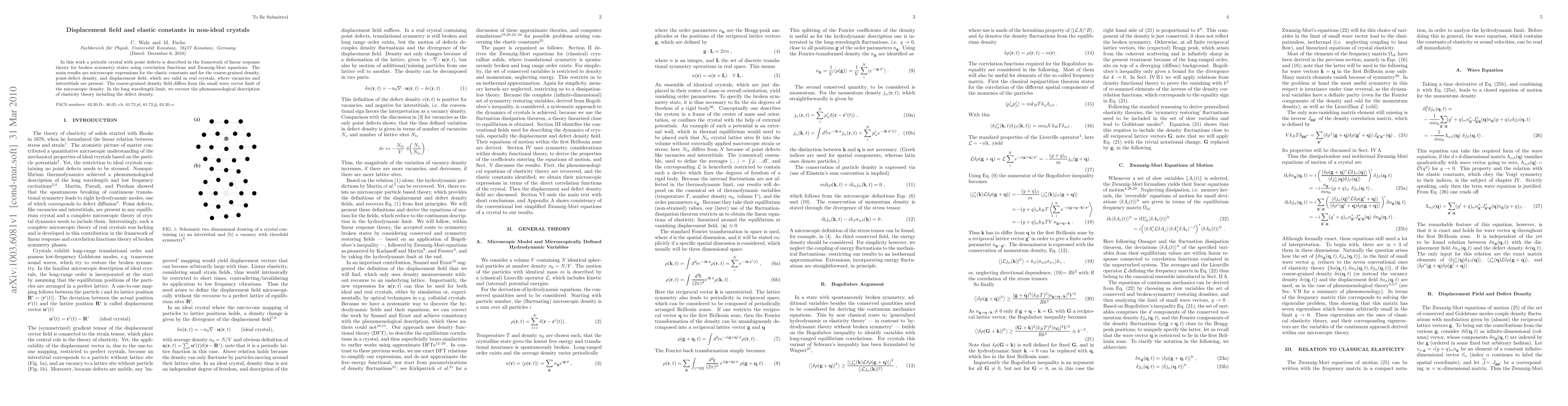 Researchers used linear response theory to study non-ideal crystals with point defects, finding expressions for elastic constants and density fields that differ from traditional elasticity theory in the presence of vacancies and interstitials.