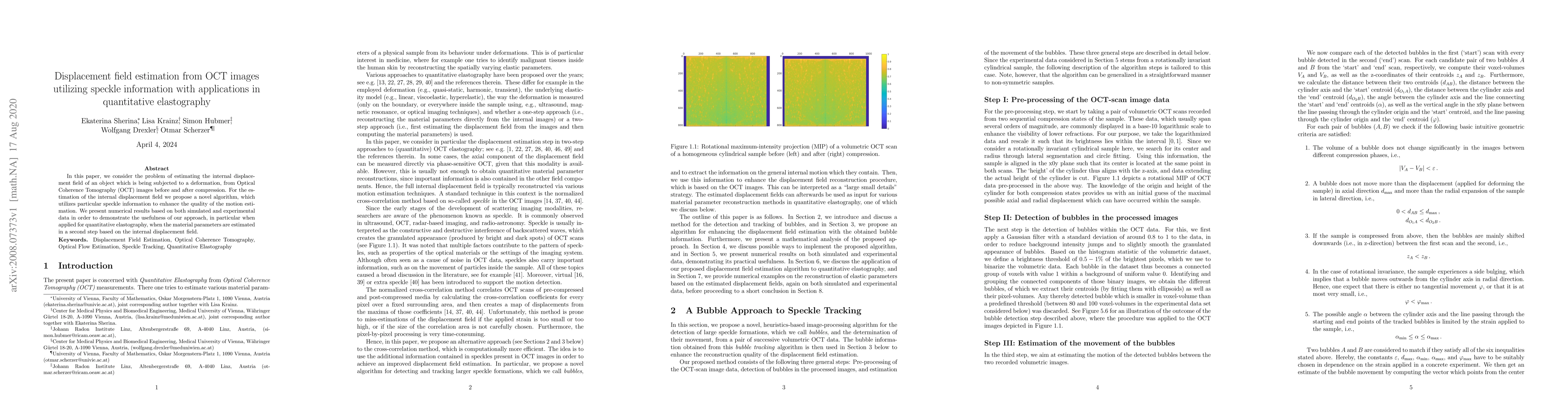 In this paper, we consider the problem of estimating the internal displacement field of an object which is being subjected to a deformation, from Optical Coherence Tomography (OCT) images before and after compression. For the estimation of the internal displacement field we propose a novel algorithm, which utilizes particular speckle information to enhance the quality of the motion estimation. We present numerical results based on both simulated and experimental data in order to demonstrate the usefulness of our approach, in particular when applied for quantitative elastography, when the material parameters are estimated in a second step based on the internal displacement field.