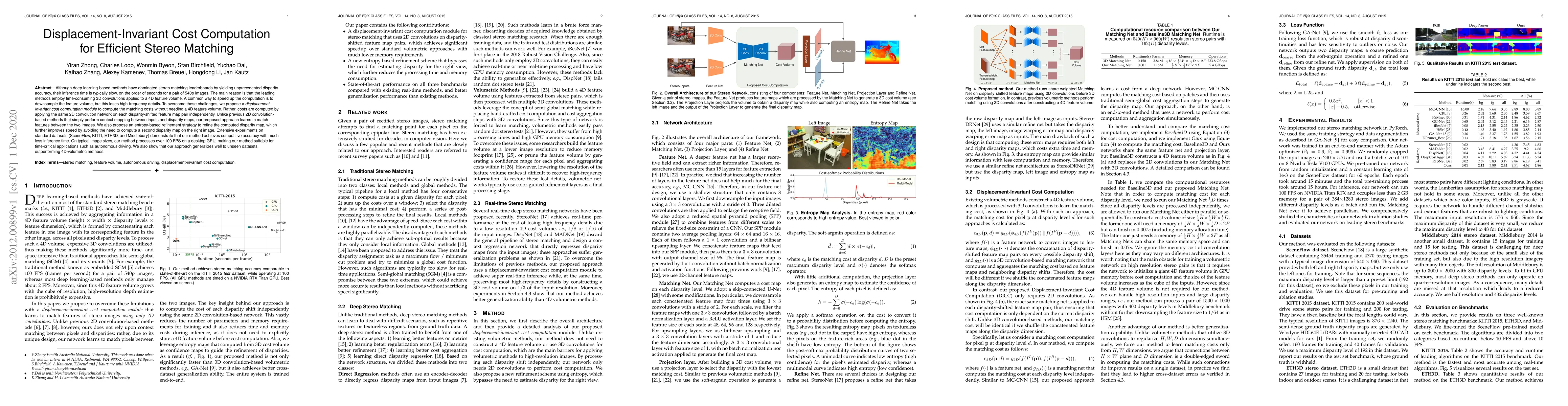 This paper proposes a new method for efficient stereo matching that achieves competitive accuracy with much less inference time than existing methods, making it suitable for time-critical applications like autonomous driving.
