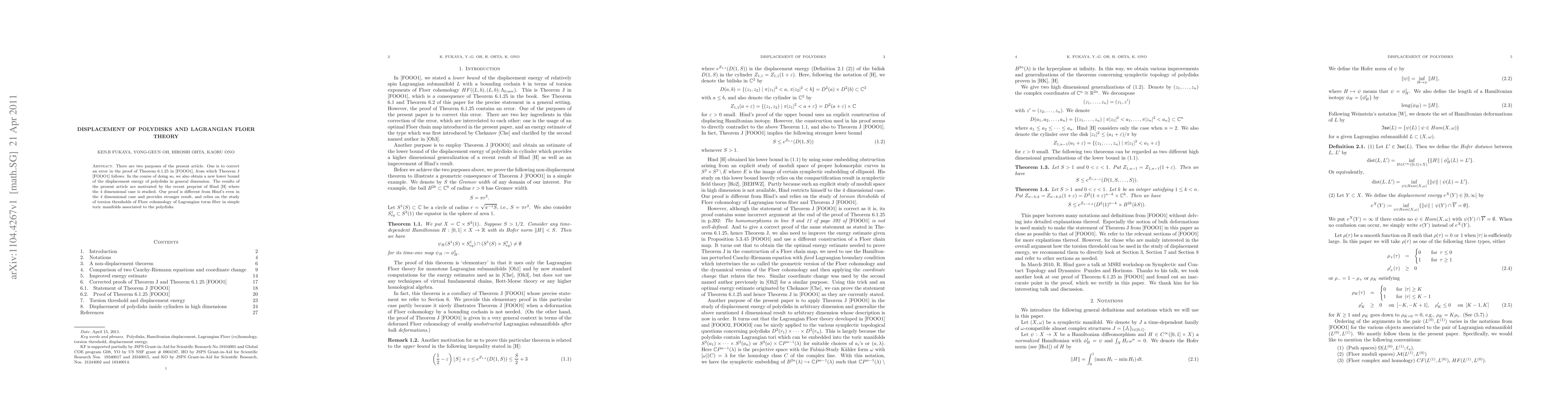 There are two purposes of the present article. One is to correct an error in the proof of Theorem 6.1.25 in \cite{fooo:book}, from which Theorem J \cite{fooo:book} follows. In the course of doing so, we also obtain a new lower bound of the displacement energy of polydisks in general dimension. The results of the present article are motivated by the recent preprint of Hind \cite{hind} where the 4 dimensional case is studied. Our proof is different from Hind's even in the 4 dimensional case and provides stronger result, and relies on the study of torsion thresholds of Floer cohomology of Lagrangian torus fiber in simple toric manifolds associated to the polydisks.
