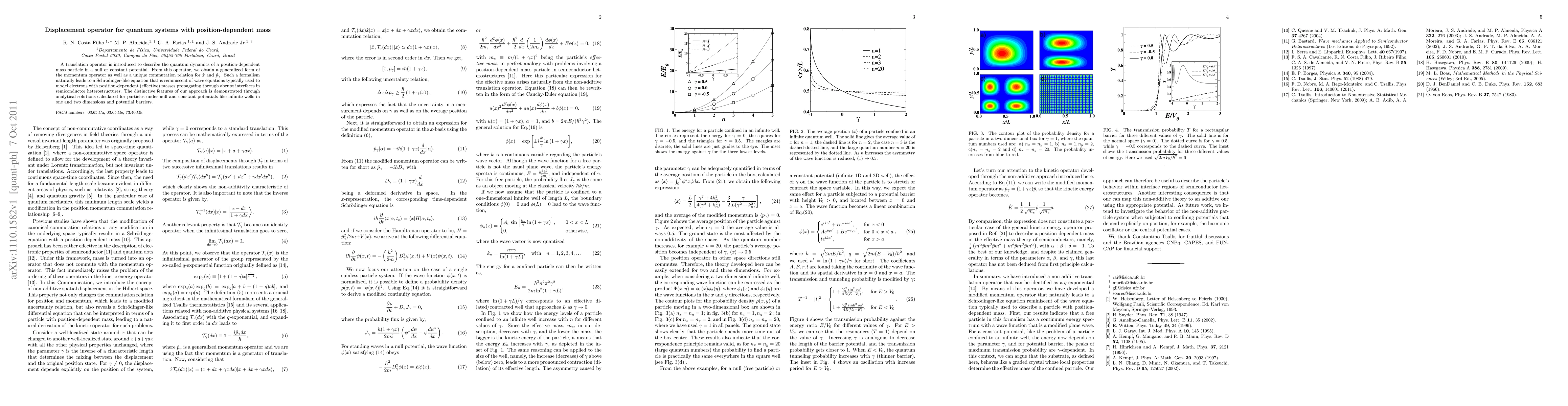 This paper introduces a translation operator for quantum systems with position-dependent mass, deriving a generalized momentum operator and a unique commutation relation. Analytical solutions for particles in various potentials illustrate the approach's distinctive features.