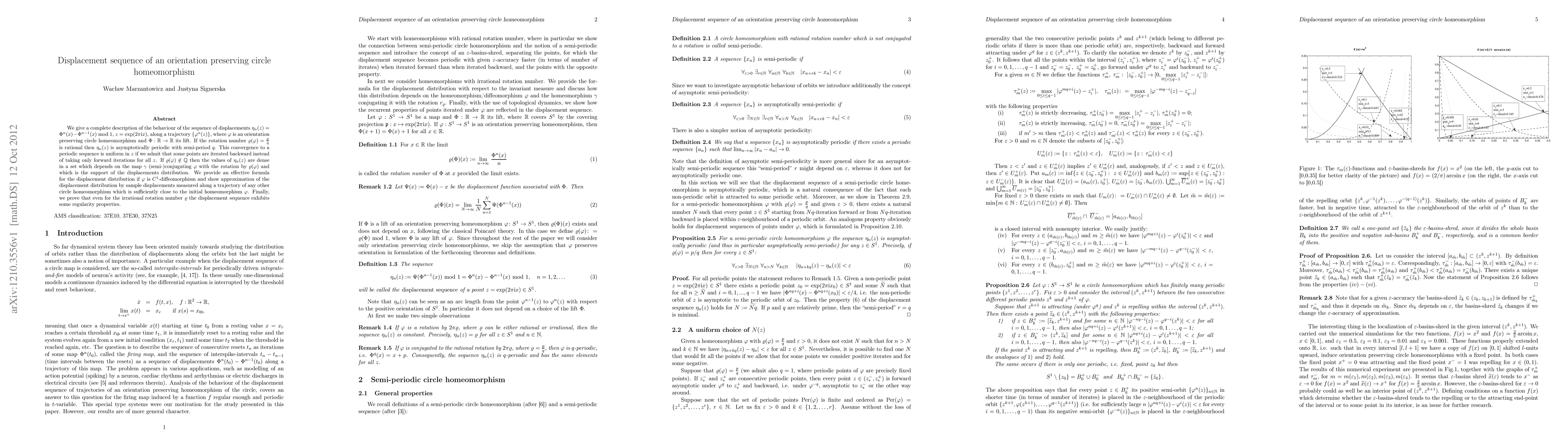 This research paper describes how a specific type of mathematical map, called an orientation-preserving circle homeomorphism, creates a sequence of displacements that either repeats periodically or becomes dense in a set over time, depending on whether the rotation number is rational or irrational.