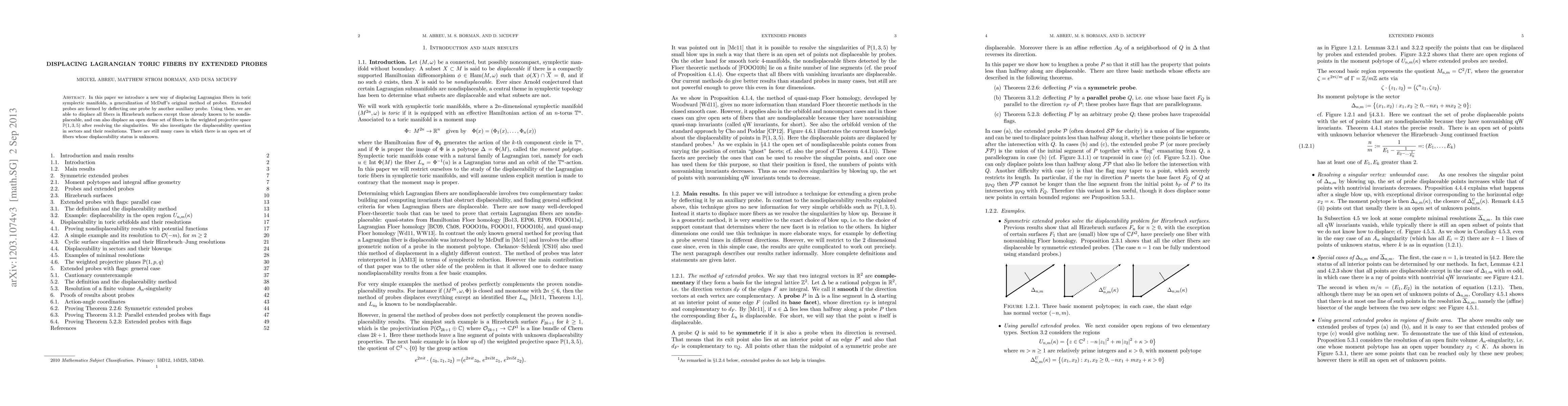 This paper presents a novel method for displacing Lagrangian toric fibers in symplectic manifolds using extended probes, which are created by deflecting one probe with another. This technique successfully displaces fibers in Hirzebruch surfaces and a dense set in weighted projective space P(1,3,5) post-resolution, while many fibers' displaceability remains undetermined.