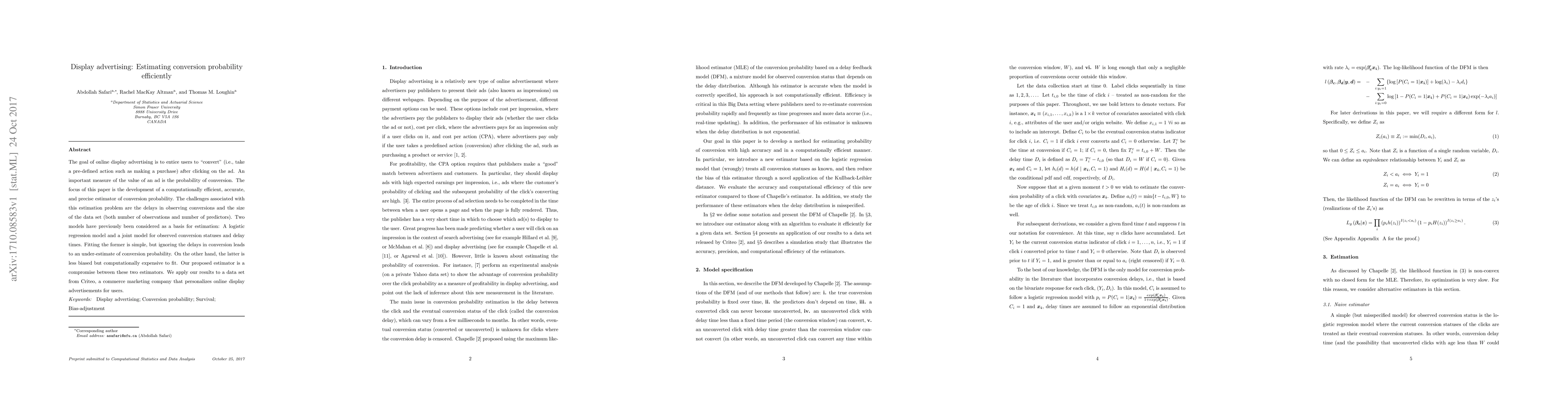 Researchers developed a computationally efficient estimator for conversion probability in online display advertising, balancing accuracy with reduced computational expense.