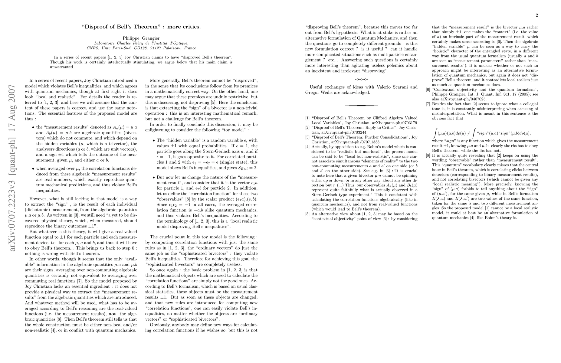 In a series of recent papers (quant-ph/0703179, quant-ph/0703244, arXiv:0707.1333) Joy Christian claims to have "disproved Bell's theorem". Though his work is certainly intellectually stimulating, we argue below that his main claim is unwarranted.
