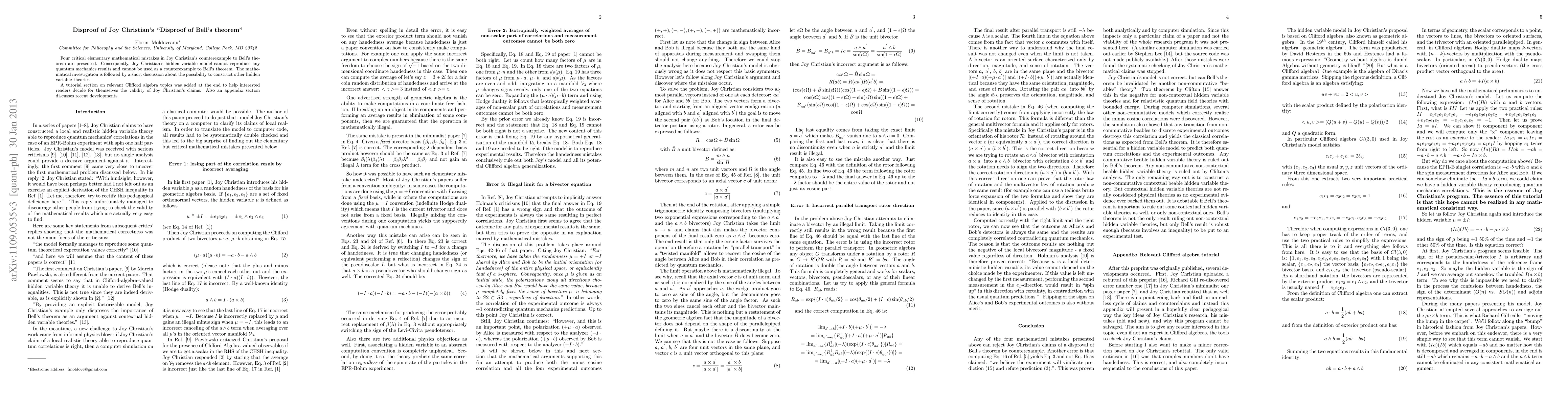 Summary: This paper identifies four fundamental mathematical errors in Joy Christian's purported counterexample to Bell's theorem, demonstrating that his hidden variable model fails to reproduce quantum mechanics results. It concludes that Christian's work cannot serve as a valid counterexample and includes a tutorial section on Clifford algebra for readers to assess the validity of his claims.
