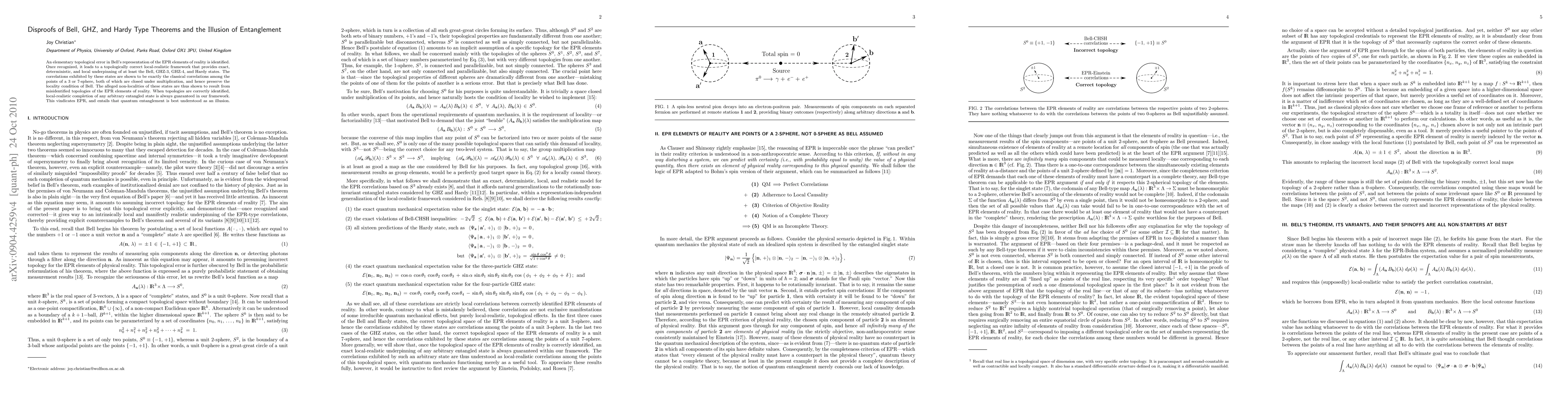 An elementary topological error in Bell's representation of the EPR elements of reality is identified. Once recognized, it leads to a topologically correct local-realistic framework that provides exact, deterministic, and local underpinning of at least the Bell, GHZ-3, GHZ-4, and Hardy states. The correlations exhibited by these states are shown to be exactly the classical correlations among the points of a 3 or 7-sphere, both of which are closed under multiplication, and hence preserve the locality condition of Bell. The alleged non-localities of these states are thus shown to result from misidentified topologies of the EPR elements of reality. When topologies are correctly identified, local-realistic completion of any arbitrary entangled state is always guaranteed in our framework. This vindicates EPR, and entails that quantum entanglement is best understood as an illusion.