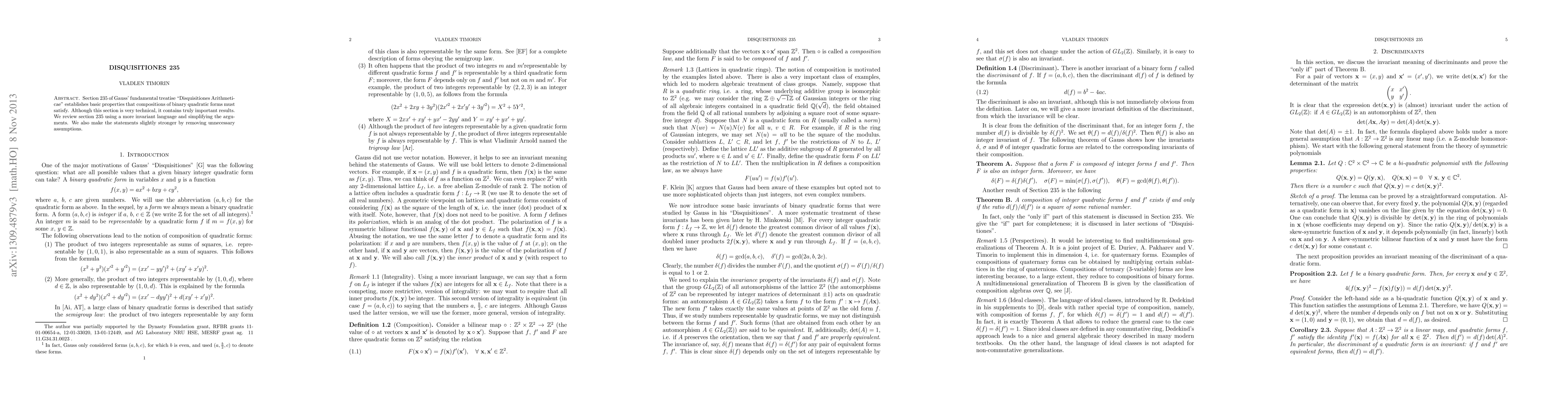 Section 235 of Gauss' fundamental treatise "Disquisitiones Arithmeticae" establishes basic properties that compositions of binary quadratic forms must satisfy. Although this section is very technical, it contains truly important results. We review section 235 using a more invariant language and simplifying the arguments. We also make the statements slightly stronger by removing unnecessary assumptions.