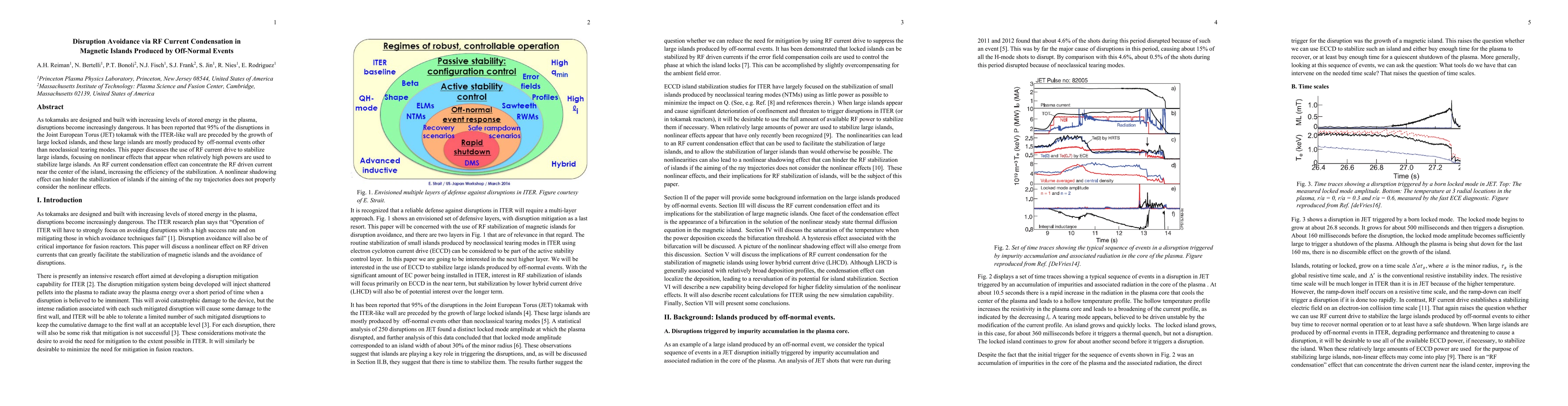 As tokamaks are designed and built with increasing levels of stored energy in the plasma, disruptions become increasingly dangerous. It has been reported that 95% of the disruptions in the Joint European Torus (JET) tokamak with the ITER-like wall are preceded by the growth of large locked islands, and these large islands are mostly produced by off-normal events other than neoclassical tearing modes. This paper discusses the use of RF current drive to stabilize large islands, focusing on nonlinear effects that appear when relatively high powers are used to stabilize large islands. An RF current condensation effect can concentrate the RF driven current near the center of the island, increasing the efficiency of the stabilization. A nonlinear shadowing effect can hinder the stabilization of islands if the aiming of the ray trajectories does not properly consider the nonlinear effects.