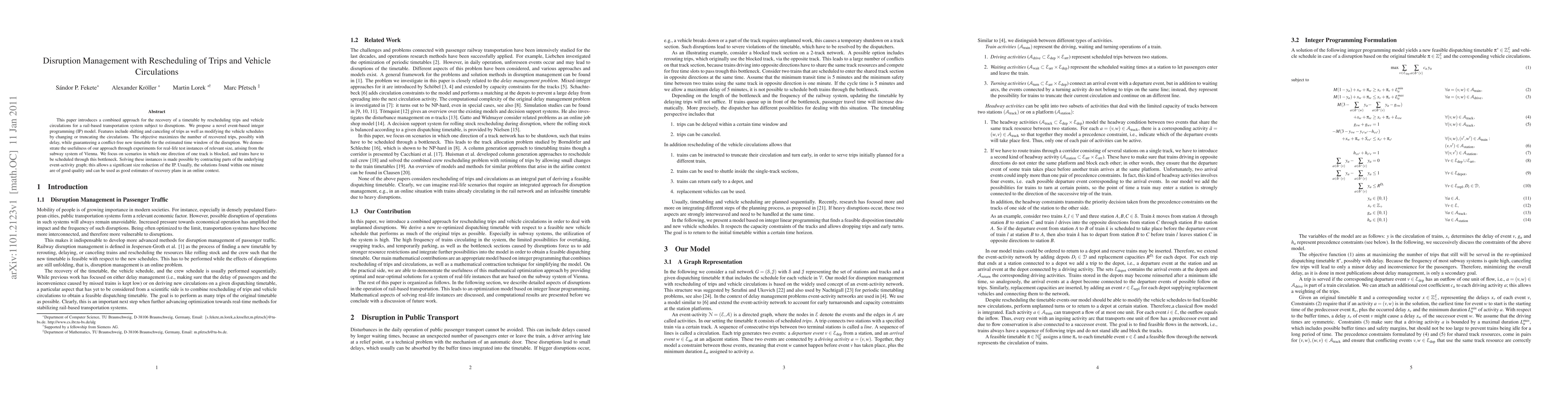 This paper proposes an event-based integer programming model to reschedule trips and vehicle circulations for disrupted rail-based transportation systems, aiming to maximize the number of recovered trips within a conflict-free timetable. Experiments on Vienna's subway system show effective recovery plans, especially for track blockages.
