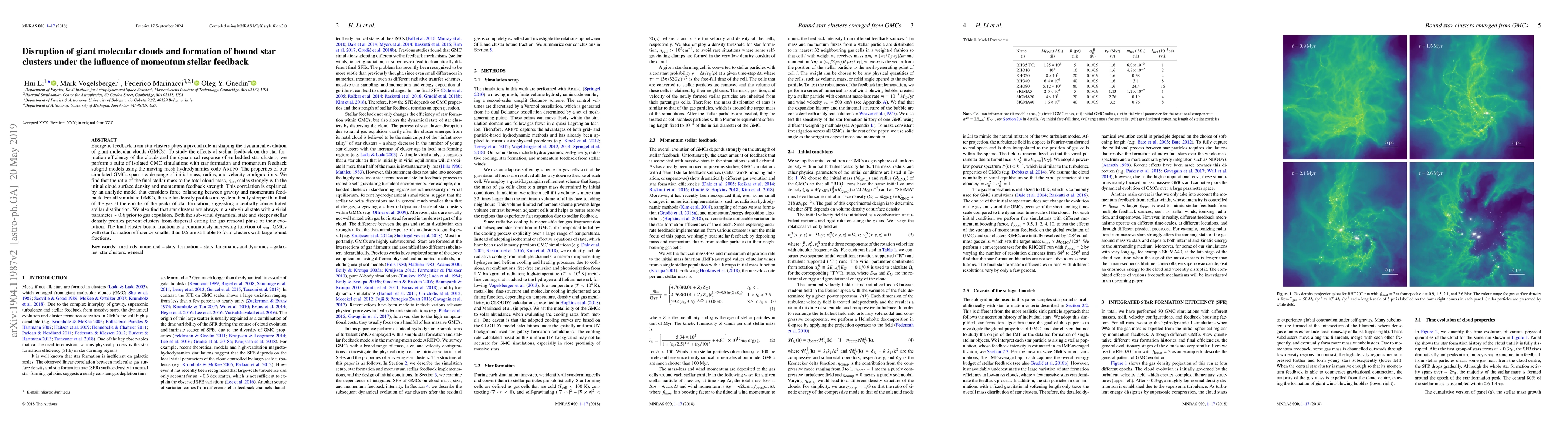 This study investigates how stellar feedback influences the disruption of giant molecular clouds and the formation of bound star clusters, using simulations with varying initial conditions. The results show a strong correlation between the star formation efficiency and the initial cloud's surface density and feedback strength, with star clusters remaining bound due to their sub-virial state and centrally concentrated stellar density profiles.