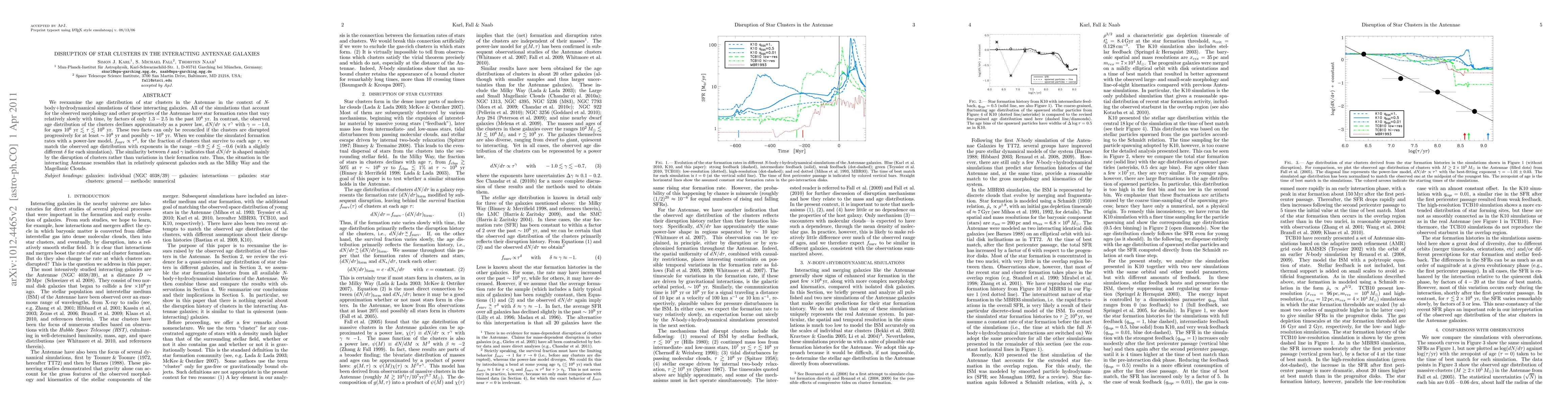The study finds that the observed age distribution of star clusters in the Antennae galaxies declines as a power law, suggesting significant disruption over time. Simulations show relatively stable star formation rates, indicating that cluster disruption, rather than varying formation rates, is the main factor shaping the observed age distribution.