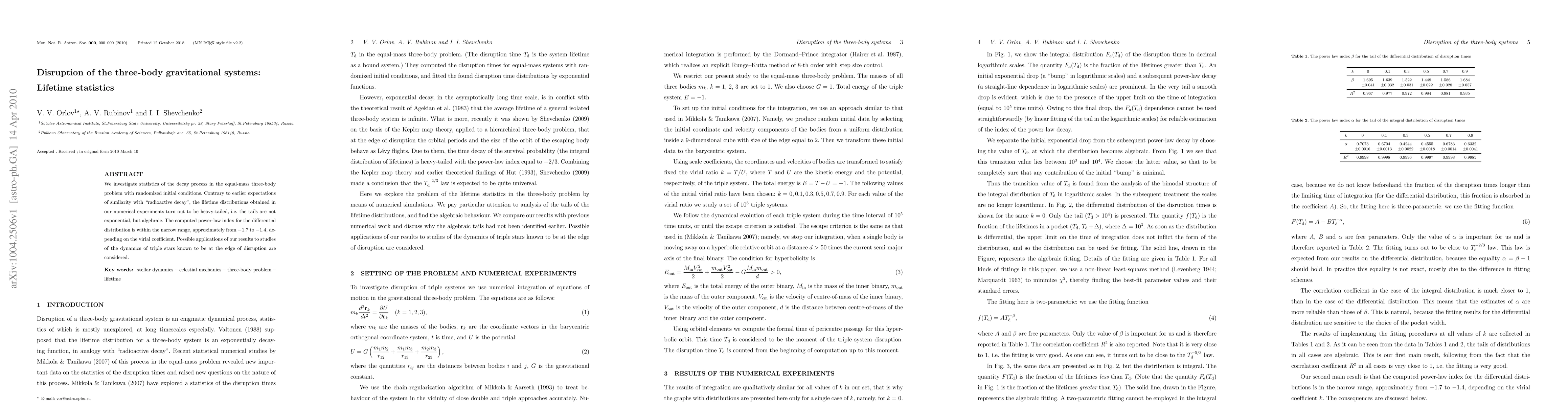 We investigate statistics of the decay process in the equal-mass three-body problem with randomized initial conditions. Contrary to earlier expectations of similarity with "radioactive decay", the lifetime distributions obtained in our numerical experiments turn out to be heavy-tailed, i.e. the tails are not exponential, but algebraic. The computed power-law index for the differential distribution is within the narrow range, approximately from -1.7 to -1.4, depending on the virial coefficient. Possible applications of our results to studies of the dynamics of triple stars known to be at the edge of disruption are considered.