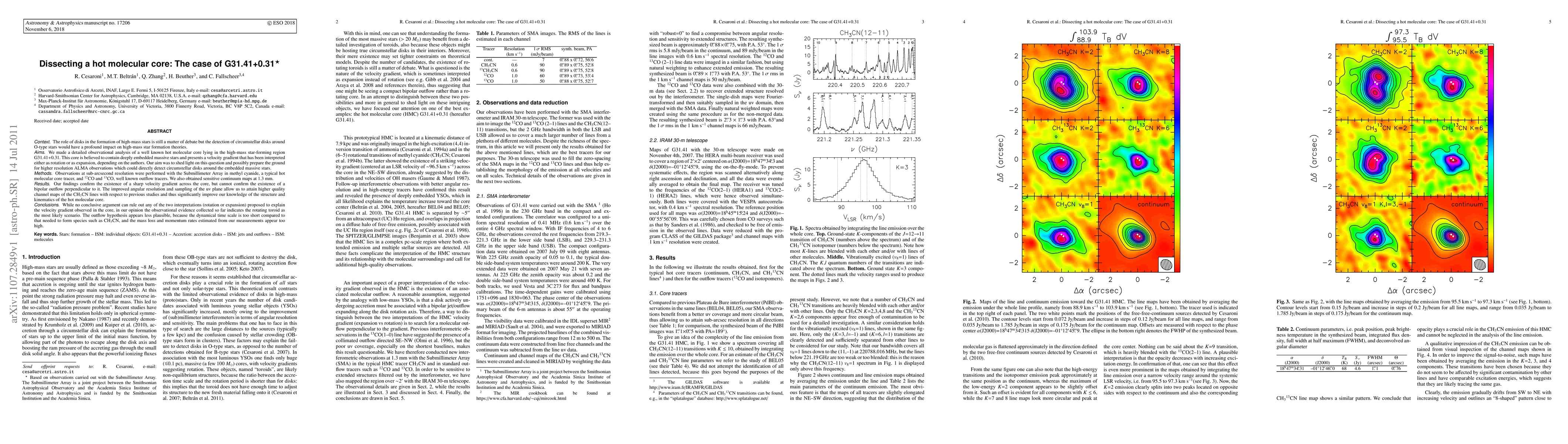 This study provides detailed observations of the hot molecular core G31.41+0.31 using the Submillimeter Array, revealing a sharp velocity gradient that suggests rotation rather than expansion. The findings support the rotating toroid model over the outflow hypothesis due to the short dynamical timescales and high mass loss rates.