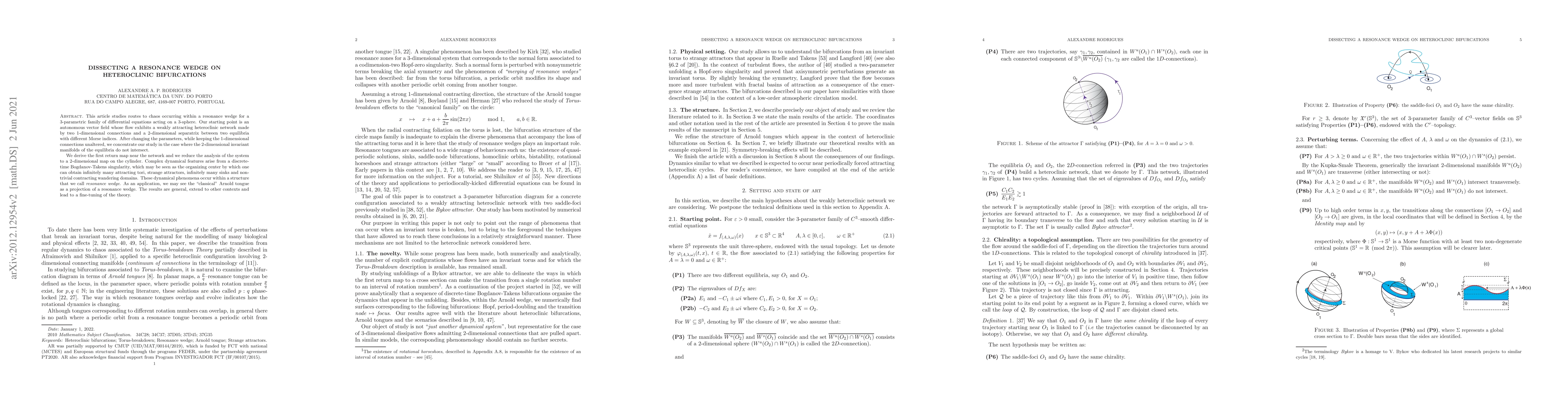 This article studies routes to chaos occurring within a resonance wedge for a 3-parametric family of differential equations acting on a 3-sphere. Our starting point is an autonomous vector field whose flow exhibits a weakly attracting heteroclinic network made by two 1-dimensional connections and a 2-dimensional separatrix between two equilibria with different Morse indices. After changing the parameters, while keeping the 1-dimensional connections unaltered, we concentrate our study in the case where the 2-dimensional invariant manifolds of the equilibria do not intersect. We derive the first return map near the ghost of the attractor and we reduce the analysis of the system to a 2-dimensional map on the cylinder. Complex dynamical features arise from a discrete-time Bogdanov-Takens singularity, which may be seen as the organizing center by which one can obtain infinitely many attracting tori, strange attractors, infinitely many sinks and non-trivial contracting wandering domains. These dynamical phenomena occur within a structure that we call resonance wedge. As an application, we may see the "classical" Arnold tongue as a projection of a resonance wedge. The results are general, extend to other contexts and lead to a fine-tuning of the theory.