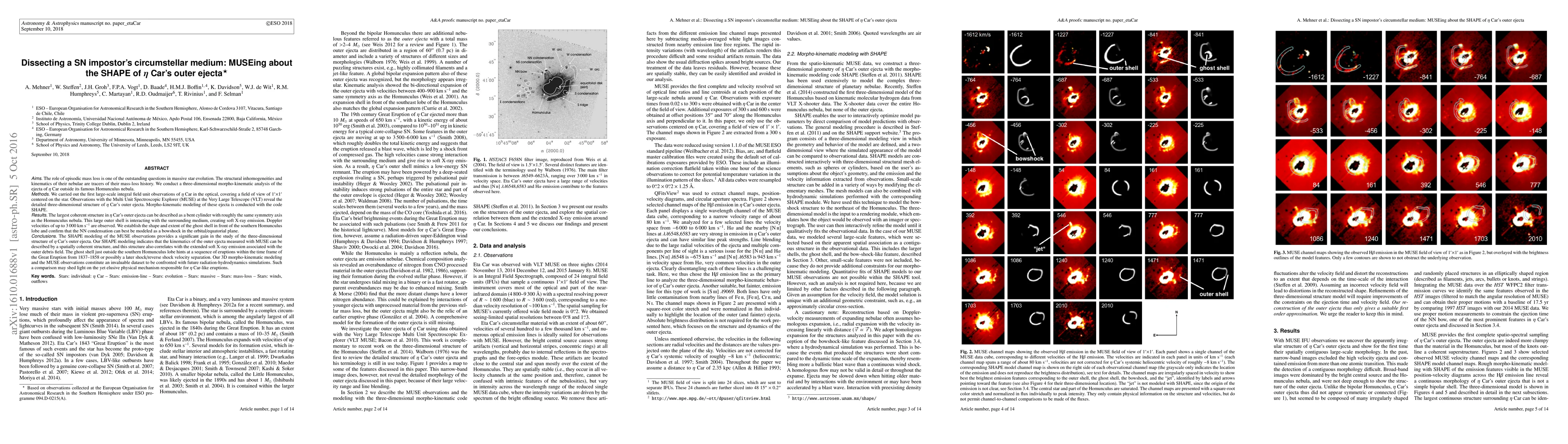 This paper uses MUSE observations to analyze the three-dimensional structure and kinematics of the outer ejecta of the massive star eta Car, revealing a bent cylindrical shape interacting with the surrounding medium. The findings suggest a sequence of eruptions and provide a dataset for future simulations to understand the mechanisms behind such stellar eruptions.