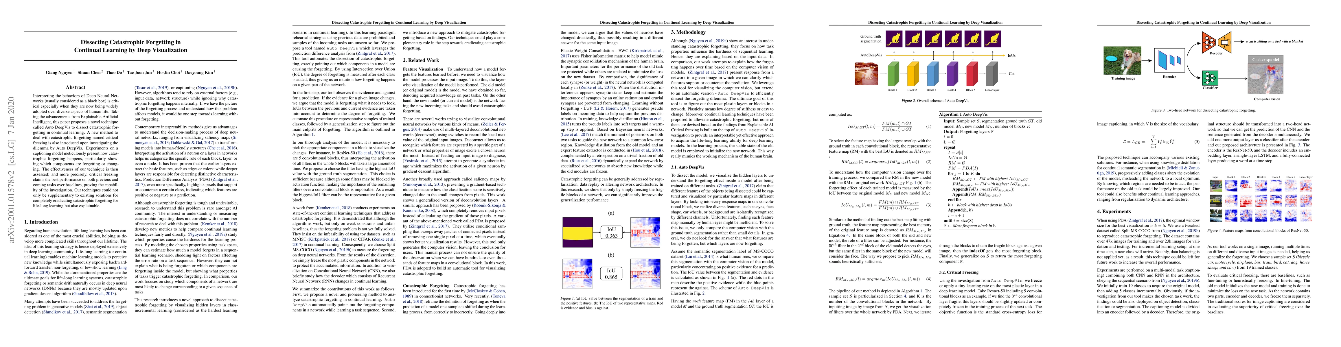 This paper introduces Auto DeepVis, a novel technique to interpret catastrophic forgetting in continual learning for deep neural networks. It also proposes critical freezing to mitigate this issue, demonstrating its effectiveness through experiments on a captioning model, which highlights which components are affected.