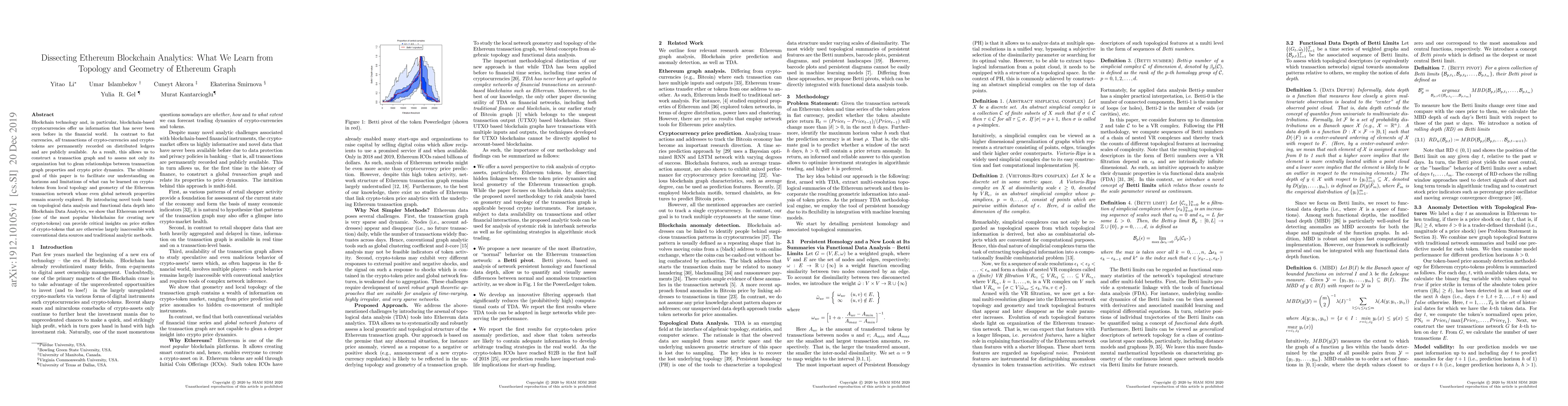 Blockchain technology and, in particular, blockchain-based cryptocurrencies offer us information that has never been seen before in the financial world. In contrast to fiat currencies, all transactions of crypto-currencies and crypto-tokens are permanently recorded on distributed ledgers and are publicly available. As a result, this allows us to construct a transaction graph and to assess not only its organization but to glean relationships between transaction graph properties and crypto price dynamics. The ultimate goal of this paper is to facilitate our understanding on horizons and limitations of what can be learned on crypto-tokens from local topology and geometry of the Ethereum transaction network whose even global network properties remain scarcely explored. By introducing novel tools based on topological data analysis and functional data depth into Blockchain Data Analytics, we show that Ethereum network (one of the most popular blockchains for creating new crypto-tokens) can provide critical insights on price strikes of crypto-tokens that are otherwise largely inaccessible with conventional data sources and traditional analytic methods.