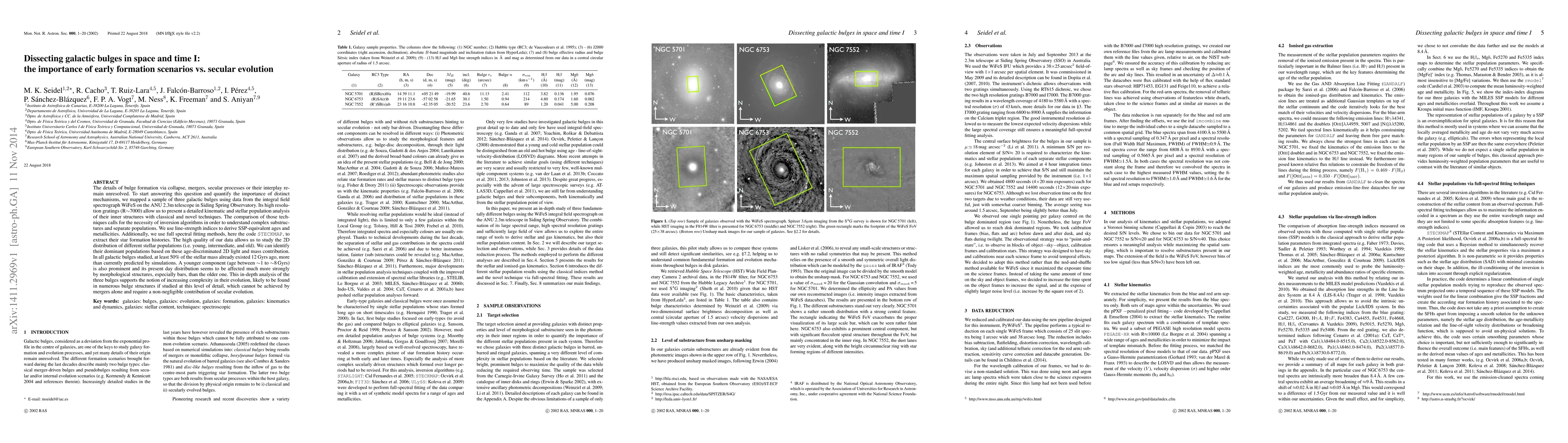 The details of bulge formation via collapse, mergers, secular processes or their interplay remain unresolved. To start answering this question and quantify the importance of distinct mechanisms, we mapped a sample of three galactic bulges using data from the integral field spectrograph WiFeS on the ANU 2.3m telescope in Siding Spring Observatory. Its high resolution gratings (R=7000) allow us to present a detailed kinematic and stellar population analysis of their inner structures with classical and novel techniques. The comparison of those techniques calls for the necessity of inversion algorithms in order to understand complex substructures and separate populations. We use line-strength indices to derive SSP-equivalent ages and metallicities. Additionally, we use full spectral fitting methods, here the code STECKMAP, to extract their star formation histories. The high quality of our data allows us to study the 2D distribution of different stellar populations (i.e. young, intermediate, and old). We can identify their dominant populations based on these age-discriminated 2D light and mass contribution. In all galactic bulges studied, at least 50% of the stellar mass already existed 10 Gyrs ago, more than currently predicted by simulations. A younger component (age between 1 to 8 Gyrs) is also prominent and its present day distribution seems to be affected much more strongly by morphological structures, especially bars, than the older one. This in-depth analysis of the three bulges supports the notion of increasing complexity in their evolution, likely to be found in numerous bulge structures if studied at this level of detail, which cannot be achieved by mergers alone and require a non-negligible contribution of secular evolution.