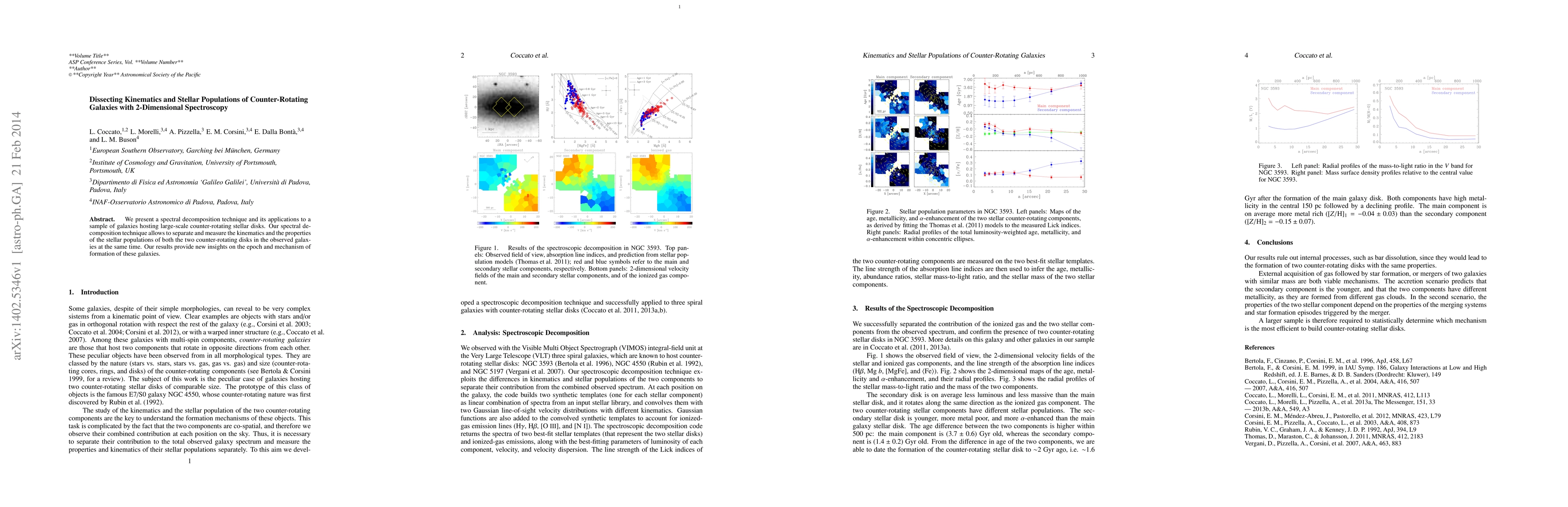 This paper introduces a spectral decomposition technique to analyze counter-rotating galaxies, enabling simultaneous measurement of the kinematics and stellar populations of both counter-rotating disks. The findings offer new insights into the formation epoch and mechanisms of these galaxies.