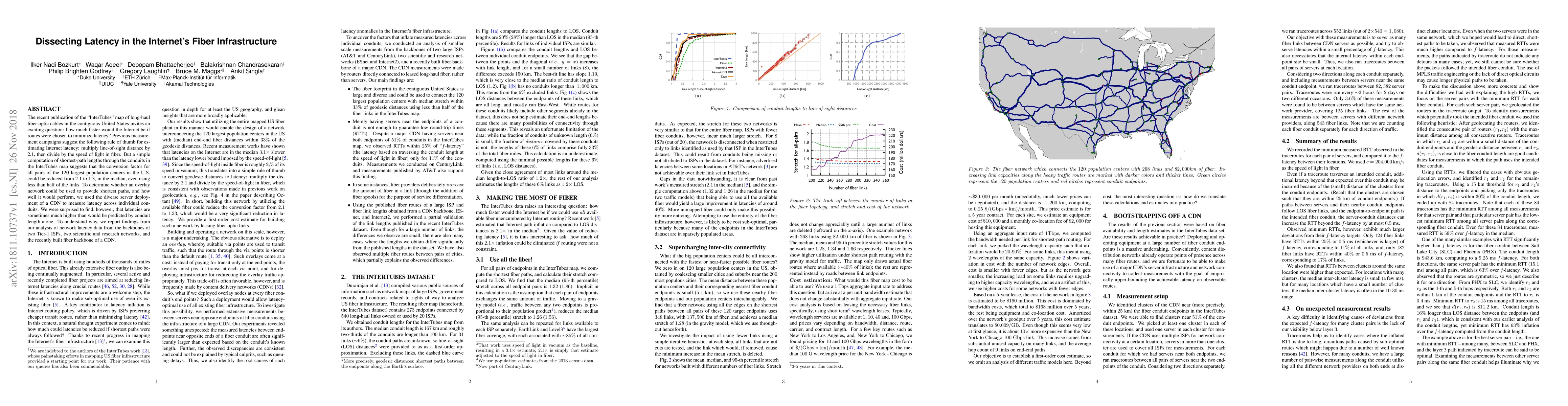 This paper investigates how optimizing fiber-optic cable routes could reduce Internet latency, finding that the median conversion factor for latency could drop from 2.1 to 1.3. It also explores the potential of overlay networks to achieve shortest paths, but discovers that actual latencies often exceed predictions based on conduit length alone, prompting a deeper analysis of network latency data from major ISPs and research networks.