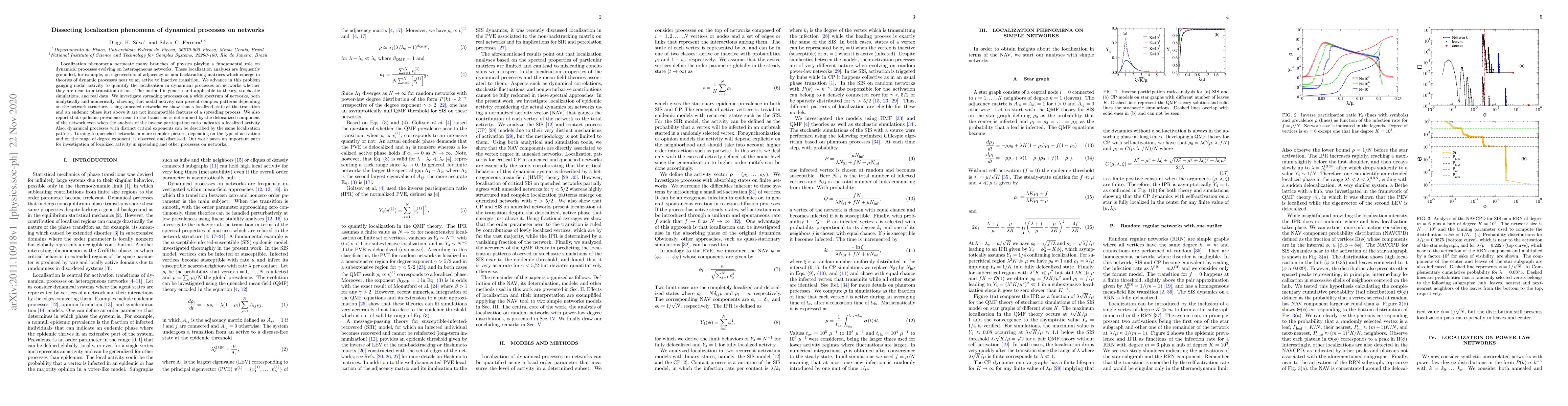 This paper explores the localization phenomena in dynamical processes on networks, proposing a method to quantify localization based on nodal activity. It reveals complex patterns of localized activity influenced by network structure and shows that localized and delocalized states can coexist, offering insights into epidemic prevalence and critical exponents.