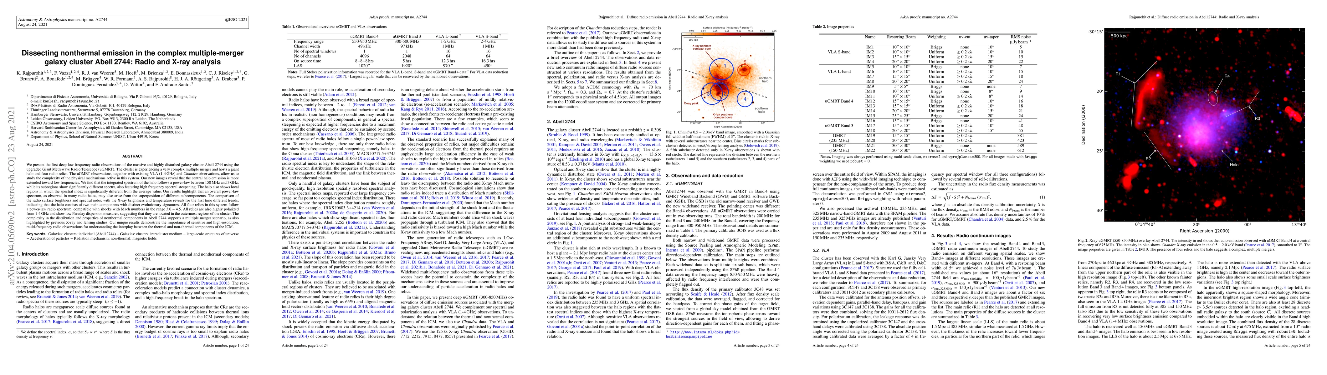 Researchers studied Abell 2744, a complex galaxy cluster with multiple mergers, using radio and X-ray observations to understand the physical mechanisms behind its nonthermal emission.