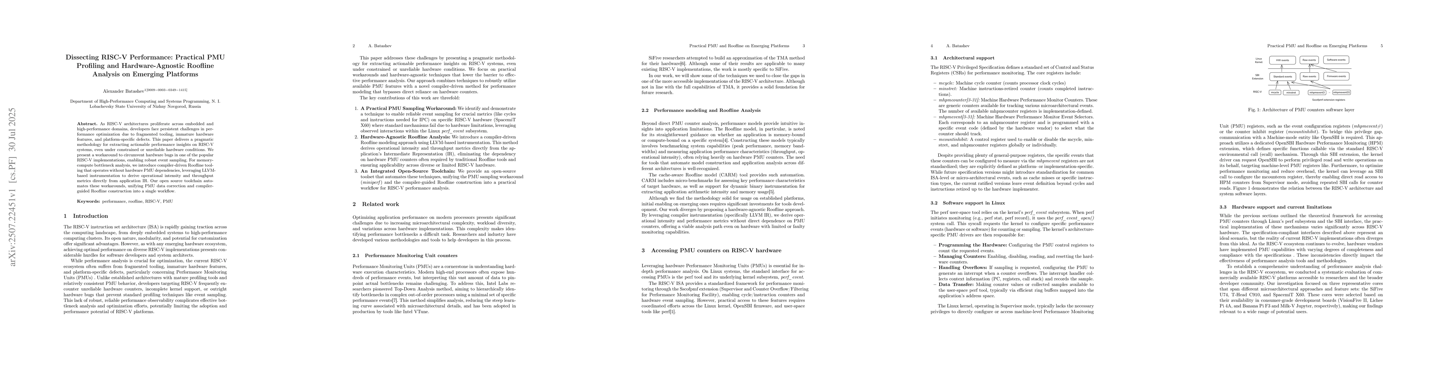 This work is novel in its pragmatic methodology for performance analysis on RISC-V systems, addressing challenges posed by fragmented tooling and immature hardware features, and its compiler-driven Roofline analysis tool that operates without hardware PMU dependencies.