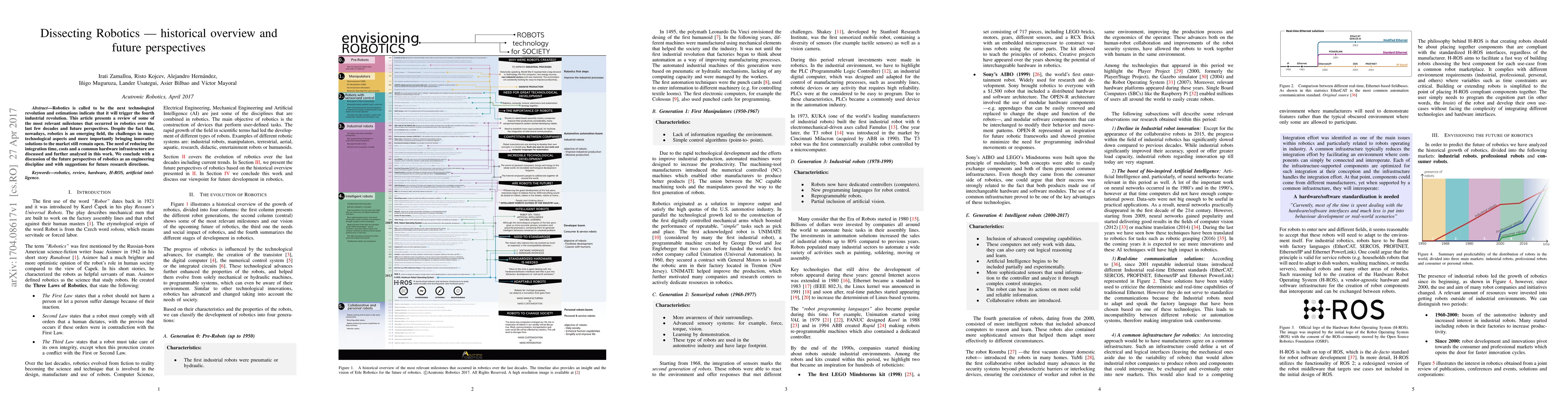 This paper reviews key milestones in robotics' development, highlighting ongoing challenges like reducing integration time and costs. It discusses future perspectives, suggesting research directions for the field.