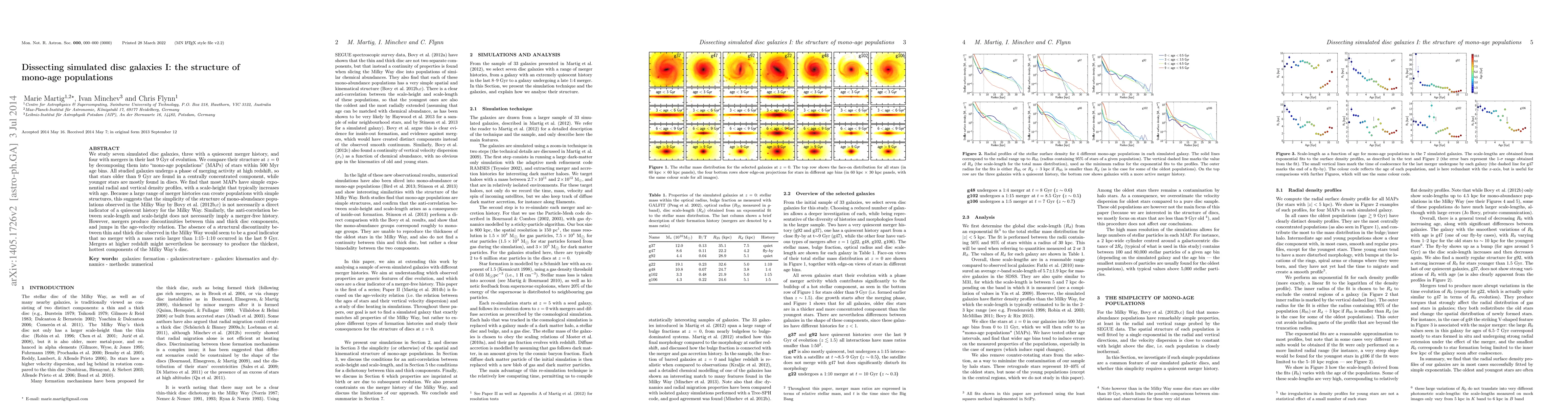 This paper examines the structure of seven simulated disc galaxies, finding that mono-age populations (MAPs) exhibit simple exponential radial and vertical profiles. The study suggests that the Milky Way's structural simplicity does not necessarily indicate a quiescent history, as various merger histories can produce similar structures. Mergers create discontinuities in disc components and age-velocity relations, implying that the Milky Way's lack of such discontinuities suggests no major recent mergers.