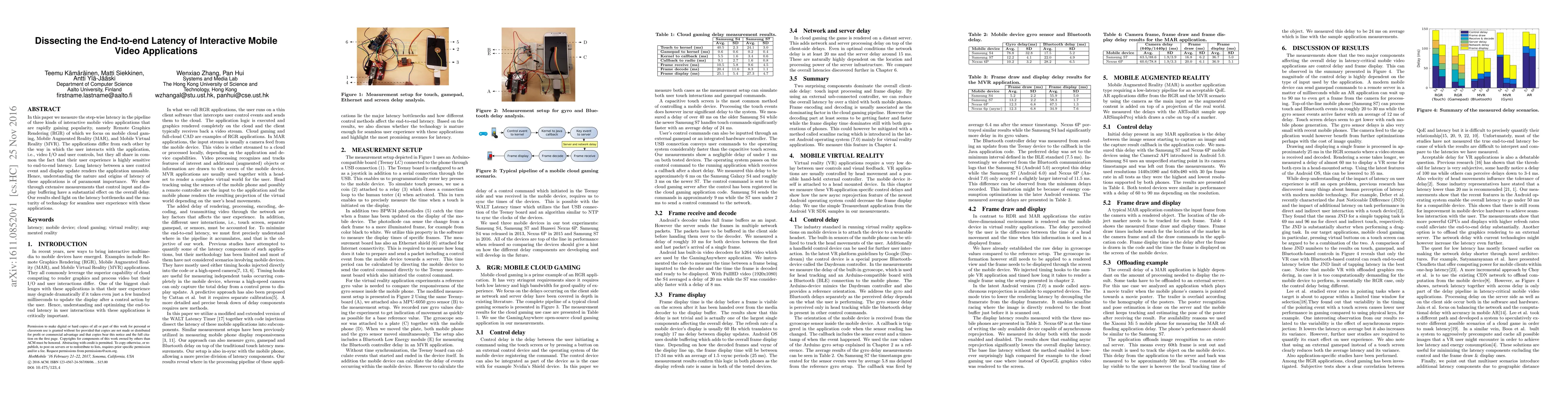 This paper measures the end-to-end latency in the pipelines of three popular interactive mobile video applications: Remote Graphics Rendering, Mobile Augmented Reality, and Mobile Virtual Reality. The study identifies control input and display buffering as significant sources of latency, providing insights into the technology's maturity for achieving seamless user experiences.
