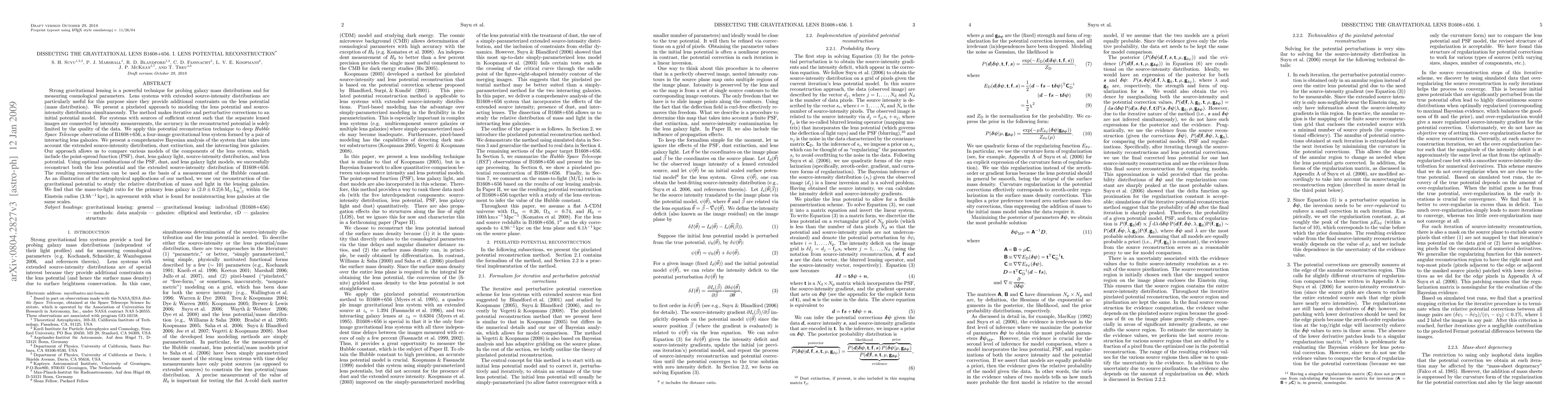 Strong gravitational lensing is a powerful technique for probing galaxy mass distributions and for measuring cosmological parameters. We present a pixelated approach to modeling simultaneously the lens potential and source intensity of strong gravitational lens systems with extended source-intensity distributions. For systems with sources of sufficient extent such that the separate lensed images are connected by intensity measurements, the accuracy in the reconstructed potential is solely limited by the quality of the data. We apply this potential reconstruction technique to deep HST observations of B1608+656, a four-image gravitational lens system formed by a pair of interacting lens galaxies. We present a comprehensive Bayesian analysis of the system that takes into account the extended source-intensity distribution, dust extinction, and the interacting lens galaxies. Our approach allows us to compare various models of the components of the lens system, which include the point-spread function (PSF), dust, lens galaxy light, source-intensity distribution, and lens potential. Using optimal combinations of the PSF, dust, and lens galaxy light models, we successfully reconstruct both the lens potential and the extended source-intensity distribution of B1608+656. The resulting reconstruction can be used as the basis of a measurement of the Hubble constant. We use our reconstruction of the gravitational potential to study the relative distribution of mass and light in the lensing galaxies. We find that the mass-to-light ratio for the primary lens galaxy is (2.0+/-0.2)h M_{\sun} L_{B,\sun}^{-1} within the Einstein radius 3.9 h^{-1} kpc, in agreement with what is found for noninteracting lens galaxies at the same scales. (Abridged)