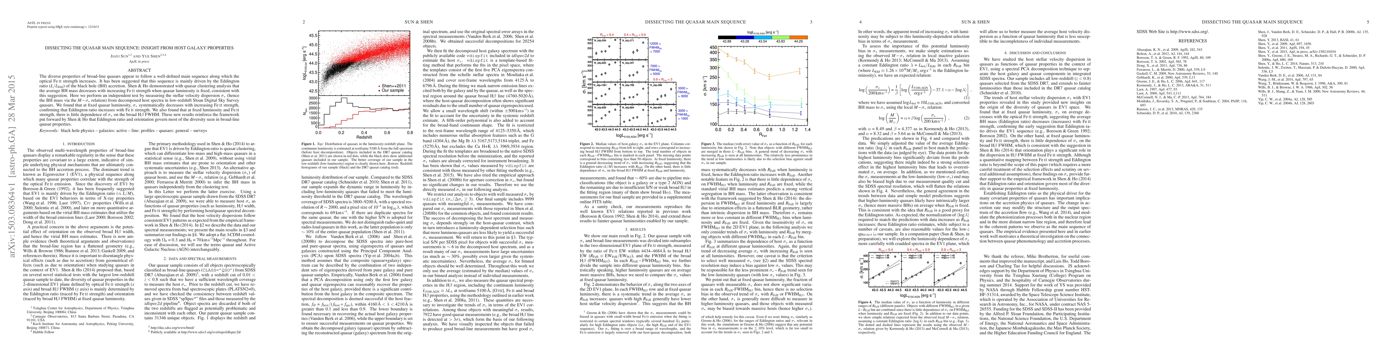 This study confirms that the quasar main sequence, characterized by increasing optical FeII strength, is primarily driven by the Eddington ratio of the black hole. By measuring stellar velocity dispersion in low-redshift quasars from host galaxy spectra, researchers found a decrease in BH mass (indicated by sigma*) with higher FeII strength at fixed luminosity. The findings support the idea that Eddington ratio and orientation explain the diversity in quasar properties.