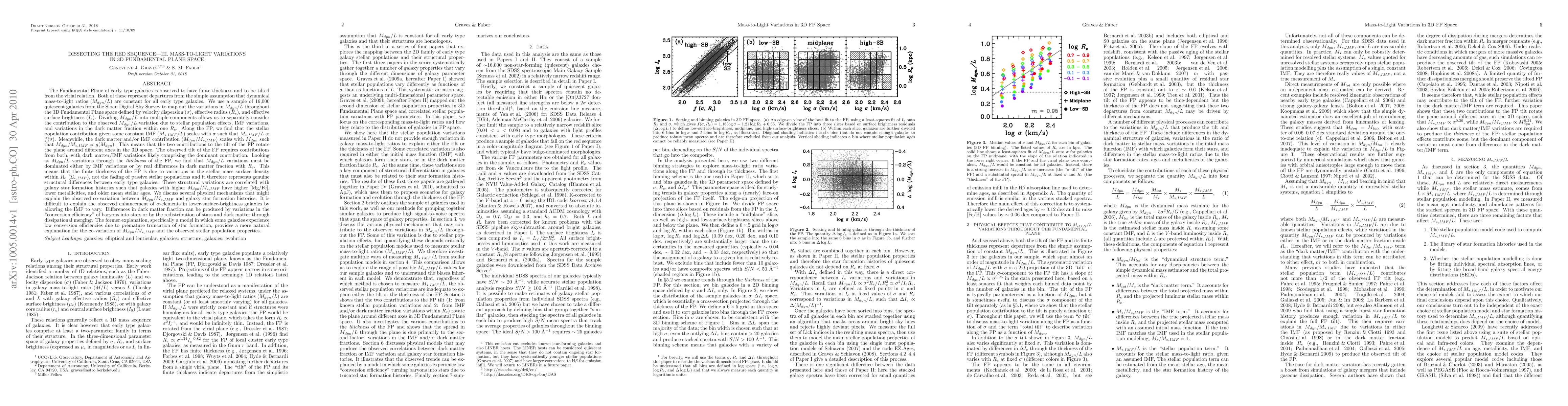 Researchers found that early-type galaxies exhibit variations in mass-to-light ratios due to differences in stellar populations, dark matter fractions, and star formation histories, leading to a tilted Fundamental Plane space.