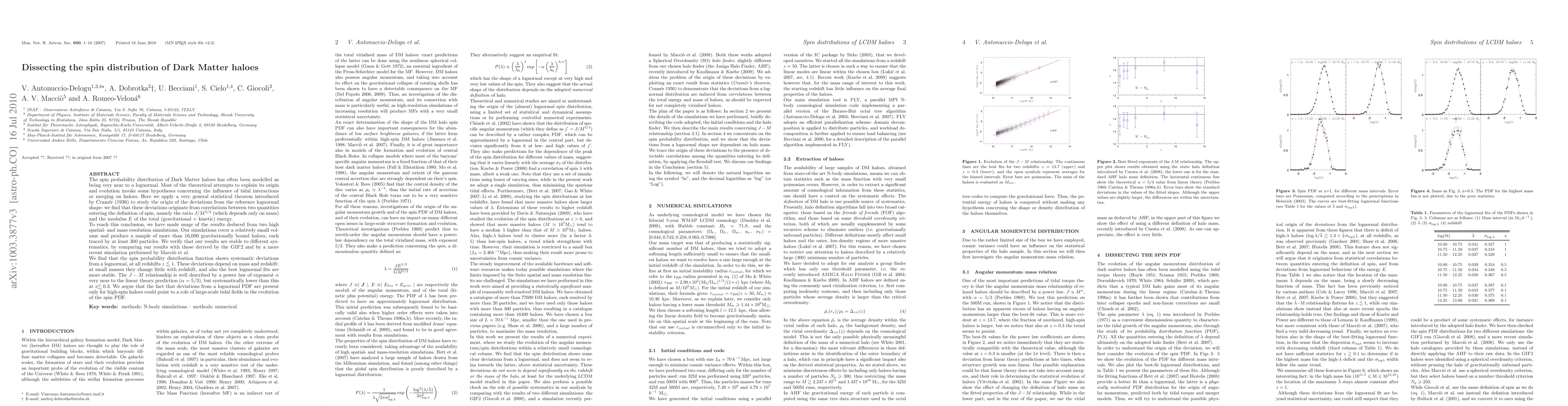 (Abridged) We apply a very general statistical theorem introduced by Cramer (1936) to study the origin of the deviations of the halo spin PDF from the reference lognormal shape. We find that these deviations originate from correlations between two quantities entering the definition of spin, namely the ratio $J/M^{5/2}$ (which depends only on mass) and the total gravitational binding energy $E$. To reach this conclusion, we have made usage of the results deduced from two high spatial- and mass resolution simulations. Our simulations cover a relatively small volume and produce a sample of more than 16.000 gravitationally bound halos, each traced by at least 300 particles. We verify that our results are stable to different systematics, by comparing our results with those derived by the GIF2 and by a more recent simulation performed by Maccio' et al. We find that the spin probability distribution function shows systematic deviations from a lognormal, at all redshifts z <= 1. These deviations depend on mass and redshift: at small masses they change little with redshift, and also the best lognormal fits are more stable. The J-M relationship is well described by a power law of exponent $\alpha$ very near to the linear theory prediction (alpha=5/3), but systematically lower than this at z<= 0.3. We argue that the fact that deviations from a lognormal PDF are present only for high-spin halos could point to a role of large-scale tidal fields in the evolution of the spin PDF.