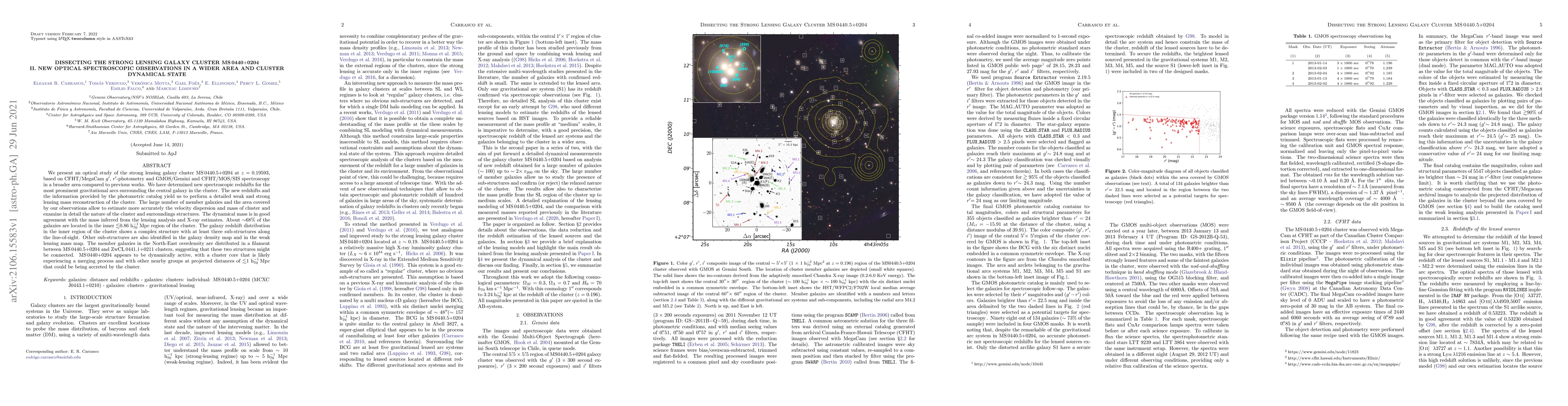This study of galaxy cluster MS 0440$+0204 uses optical spectroscopy to determine new redshifts for lensing arcs, enabling detailed lensing and dynamical mass reconstructions. The cluster is found to have a complex structure with multiple sub-clusters, and signs of ongoing merging and accretion of nearby groups.