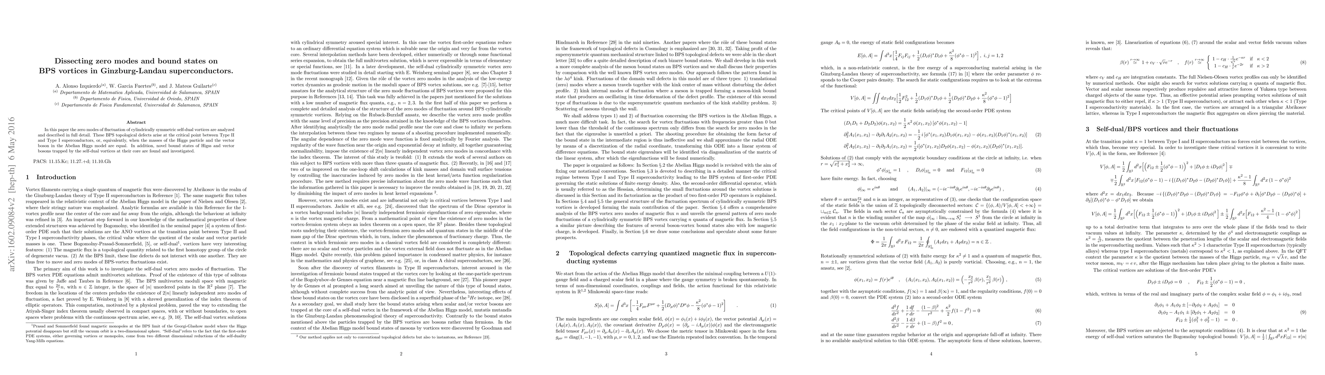 This paper analyzes zero modes of cylindrically symmetric self-dual vortices in Ginzburg-Landau superconductors, focusing on BPS topological defects that emerge at the critical transition between Type II and Type I superconductors. It also investigates novel bound states of Higgs and vector bosons trapped by these vortices.