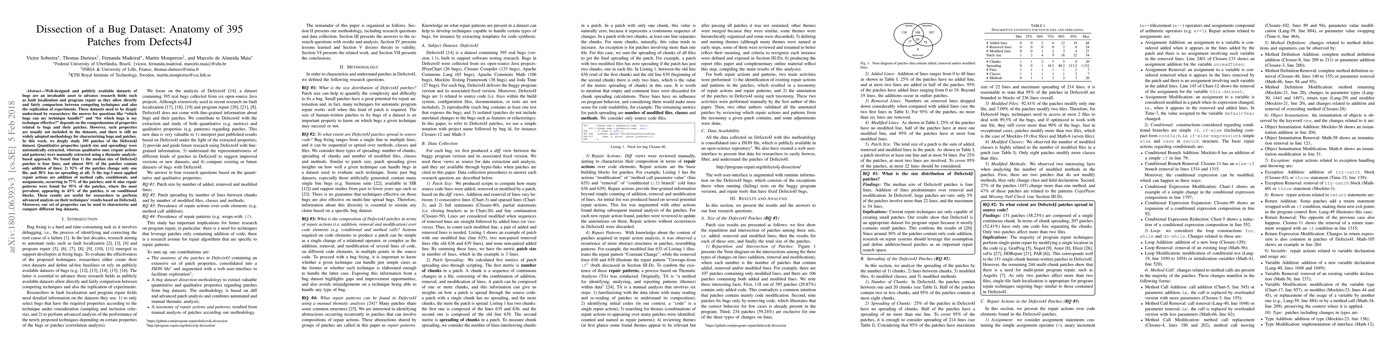This study analyzes 395 patches from the Defects4J dataset to extract quantitative and qualitative properties, revealing insights such as median patch size, repair actions, and prevalent repair patterns. The findings provide valuable data for researchers to evaluate and improve fault localization and program repair techniques.