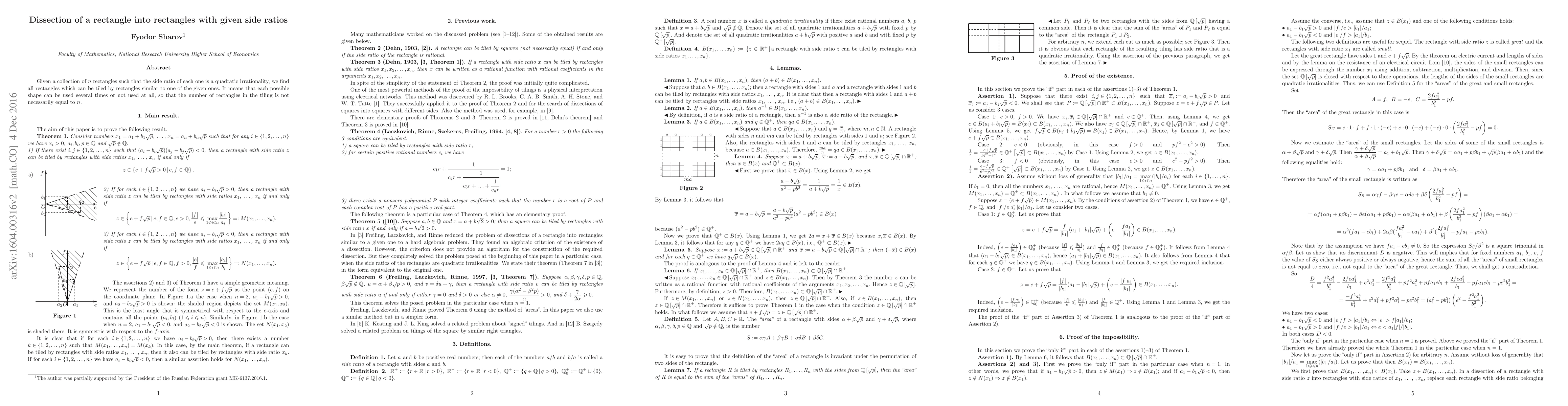 Researchers developed a method to dissect a rectangle into rectangles with given side ratios for tiling purposes, exploring the potential of various shapes in creating tilings using similar rectangles.