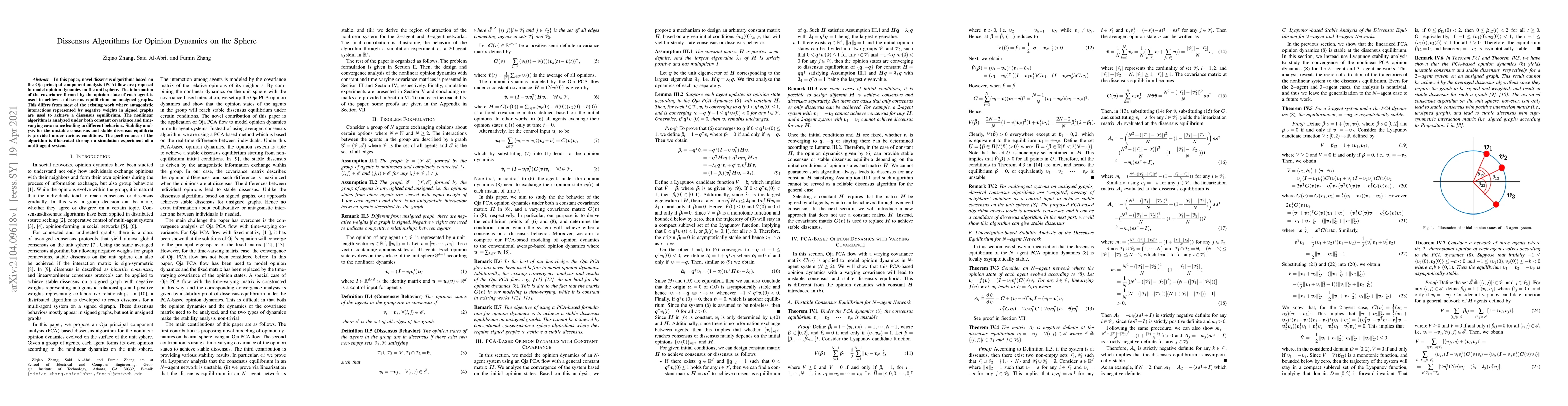 In this paper, novel dissensus algorithms based on the Oja principal component analysis (PCA) flow are proposed to model opinion dynamics on the unit sphere. The information of the covariance formed by the opinion state of each agent is used to achieve a dissensus equilibrium on unsigned graphs. This differs from most of the existing work where antagonistic interactions represented by negative weights in signed graphs are used to achieve a dissensus equilibrium. The nonlinear algorithm is analyzed under both constant covariance and time-varying covariance leading to different behaviors. Stability analysis for the unstable consensus and stable dissensus equilibria is provided under various conditions. The performance of the algorithm is illustrated through a simulation experiment of a multi-agent system.