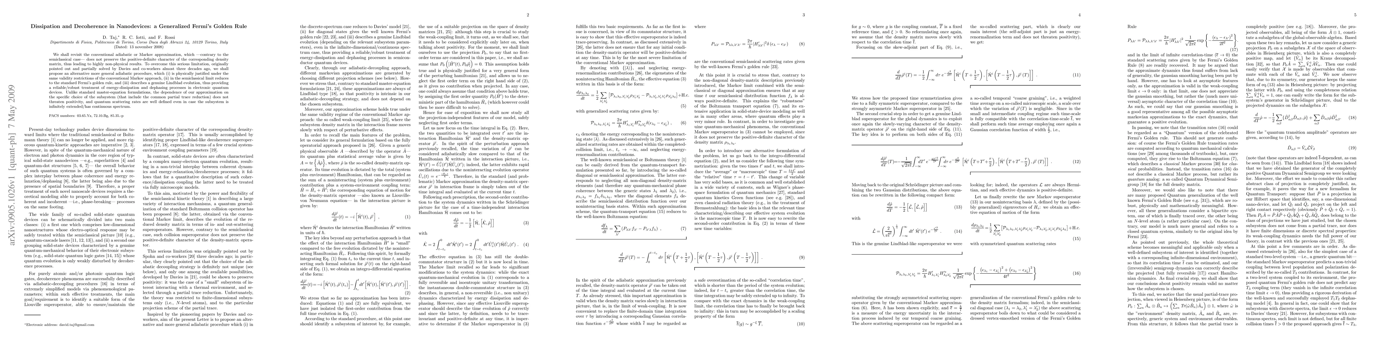 We shall revisit the conventional adiabatic or Markov approximation, which --contrary to the semiclassical case-- does not preserve the positive-definite character of the corresponding density matrix, thus leading to highly non-physical results. To overcome this serious limitation, originally pointed out and partially solved by Davies and co-workers almost three decades ago, we shall propose an alternative more general adiabatic procedure, which (i) is physically justified under the same validity restrictions of the conventional Markov approach, (ii) in the semiclassical limit reduces to the standard Fermi's golden rule, and (iii) describes a genuine Lindblad evolution, thus providing a reliable/robust treatment of energy-dissipation and dephasing processes in electronic quantum devices. Unlike standard master-equation formulations, the dependence of our approximation on the specific choice of the subsystem (that include the common partial trace reduction) does not threaten positivity, and quantum scattering rates are well defined even in case the subsystem is infinitely extended/has continuous spectrum.