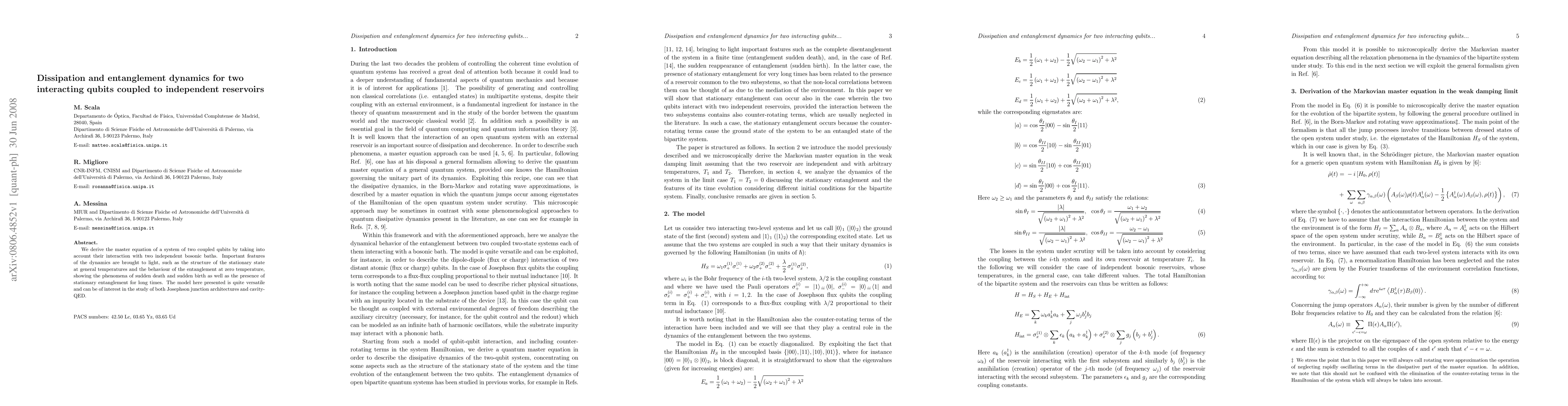 A study of two interacting qubits coupled to independent reservoirs reveals phenomena like sudden death and birth of entanglement at zero temperature, as well as stationary entanglement for long times.