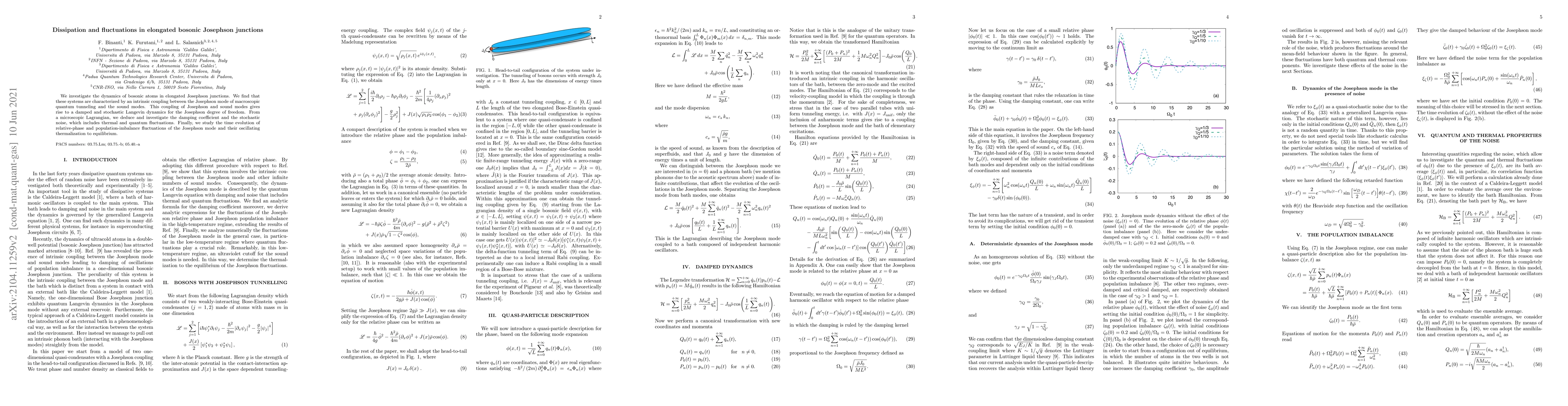 This study examines the dynamics of bosonic atoms in elongated Josephson junctions, revealing an intrinsic coupling between the Josephson mode and sound modes, resulting in damped and stochastic dynamics characterized by thermal and quantum fluctuations, and investigates the time evolution of relative-phase and population-imbalance fluctuations.