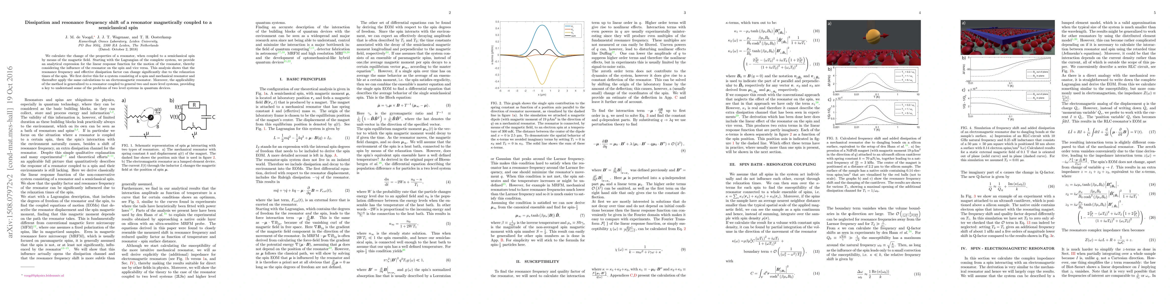 This paper presents an analytical approach to understand how a resonator's properties, such as resonance frequency and dissipation, change when coupled to a semiclassical spin via magnetic field. The study derives expressions considering the resonator-spin mutual influence, applicable to mechanical and electromagnetic resonators. The method is generalized for resonators interacting with multi-level quantum systems, aiding in solving issues related to two-level systems in quantum devices.