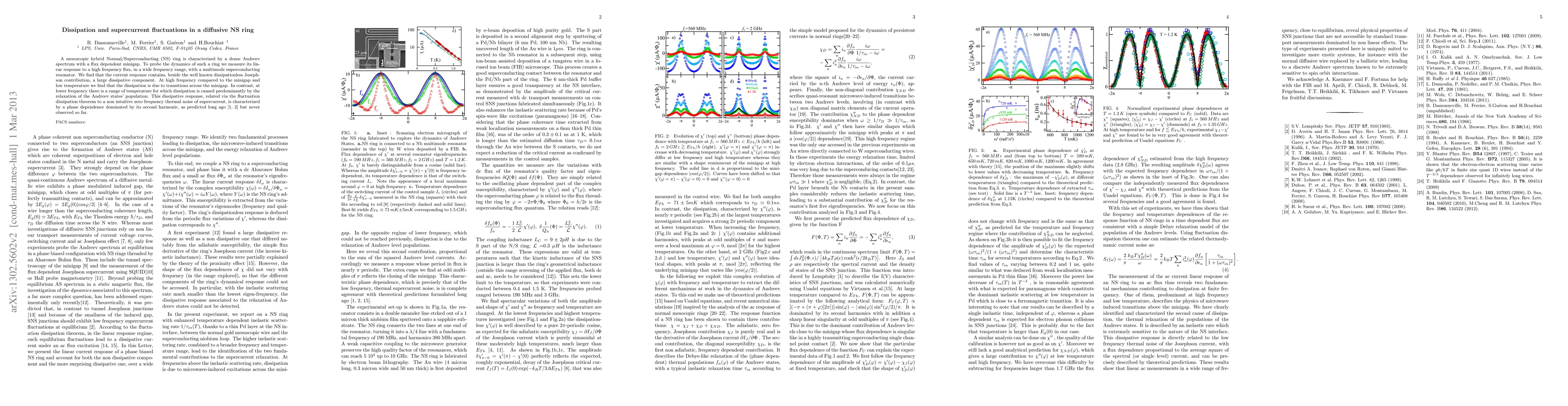 A mesoscopic hybrid Normal/ Superconducting (NS) ring is characterized by a dense Andreev spectrum with a flux dependent minigap. We measure the linear response to a high frequency flux, in a wide frequency range, with a multimode superconducting resonator. We find that the current response contains, beside the well known dissipation-less Josephson contribution, a large dissipative component. At high frequency compared to the minigap and low temperature we find that the dissipation is due to transitions above the minigap. In contrast, at lower frequency there is range of temperature for which dissipation is caused predominantly by the relaxation of the Andreev states' population.
