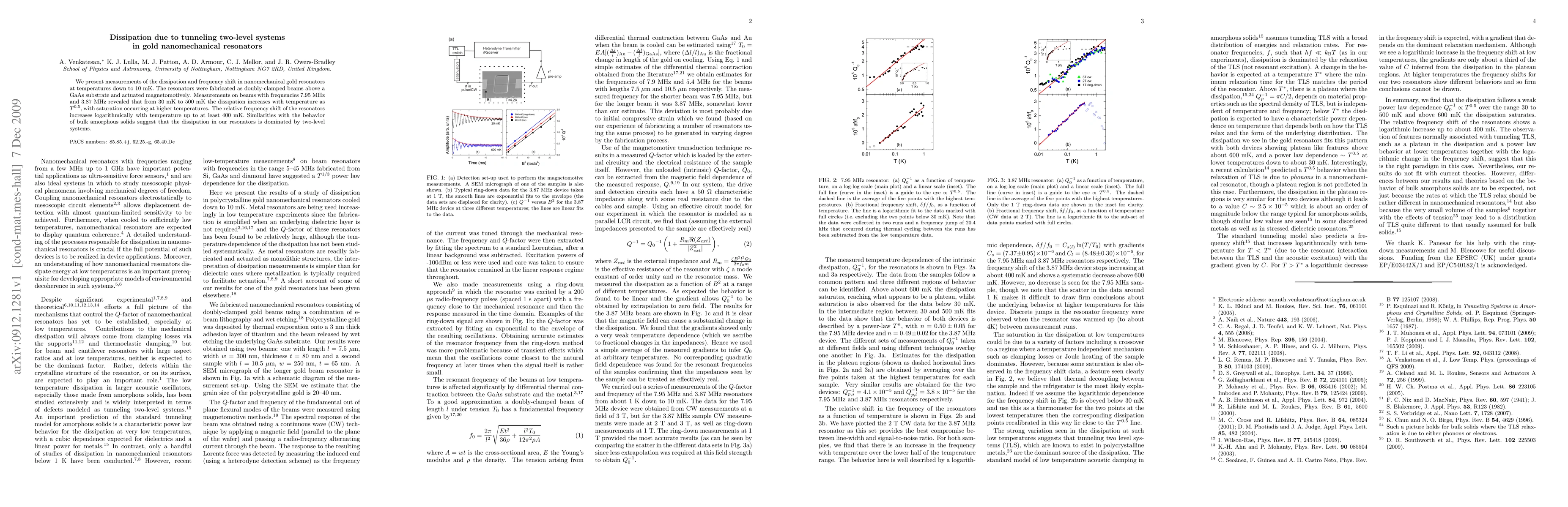 This research presents a novel understanding of tunneling systems in gold nanoresonators, which differs from existing theories for bulk solids