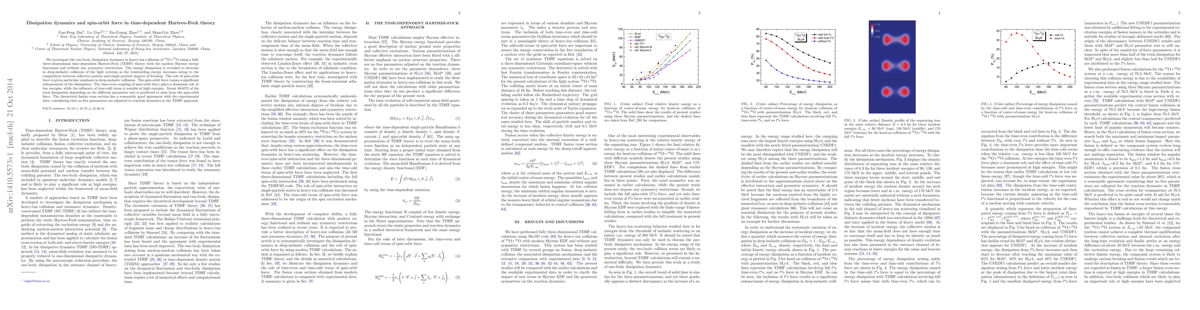 This paper explores the dissipation dynamics in heavy-ion collisions using time-dependent Hartree-Fock theory, finding that energy dissipation decreases with higher bombarding energy due to competition between collective and single-particle motions. The study highlights the significant role of spin-orbit force in enhancing dissipation, with its time-even coupling dominating at low energies and time-odd terms at high energies, contributing 40-65% to total dissipation.