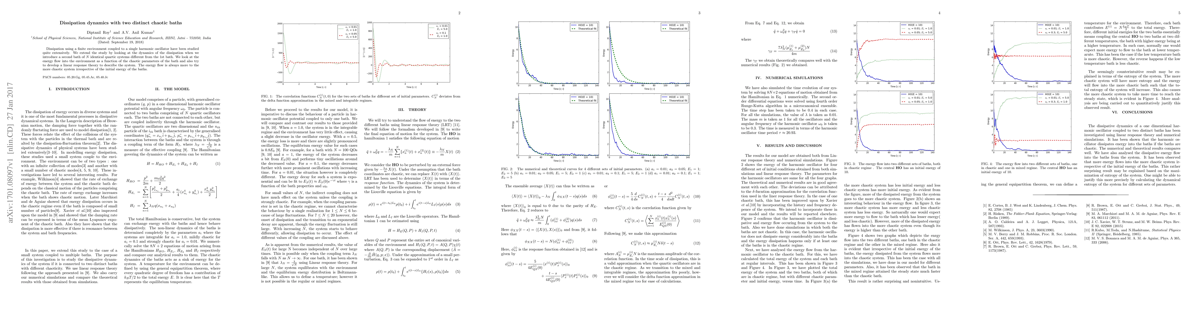 This paper investigates the dissipation dynamics of a harmonic oscillator coupled to two distinct chaotic baths, one consisting of quartic systems. It finds that energy preferentially dissipates into the more chaotic bath, regardless of initial energy conditions, and attempts to develop a linear response theory to describe this behavior.