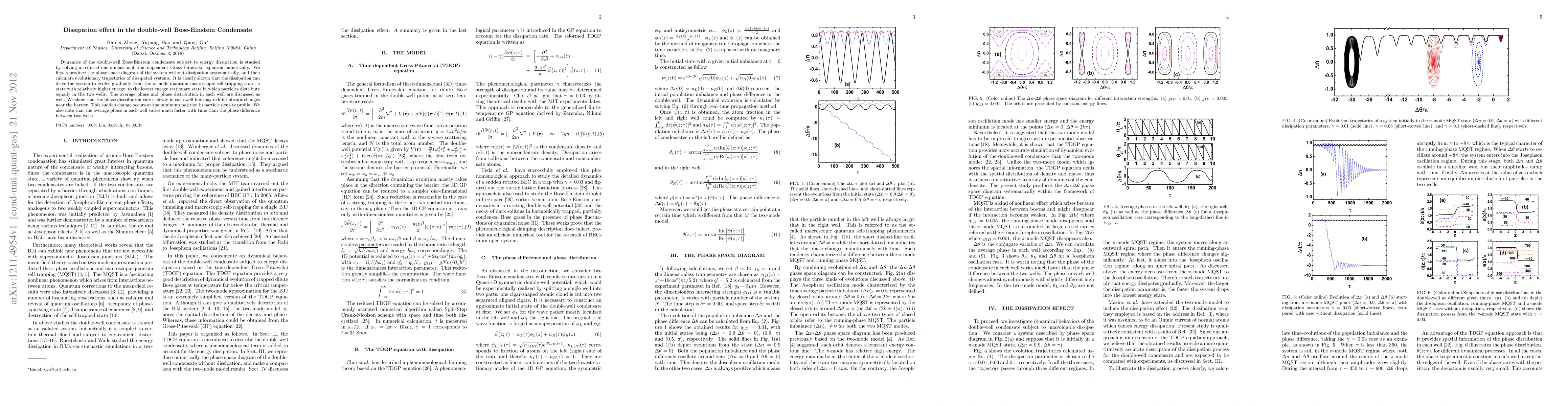 Dynamics of the double-well Bose-Einstein condensate subject to energy dissipation is studied by solving a reduced one-dimensional time-dependent Gross-Pitaevskii equation numerically. We first reproduce the phase space diagram of the system without dissipation systematically, and then calculate evolutionary trajectories of dissipated systems. It is clearly shown that the dissipation can drive the system to evolve gradually from the $\pi$-mode quantum macroscopic self-trapping state, a state with relatively higher energy, to the lowest energy stationary state in which particles distribute equally in the two wells. The average phase and phase distribution in each well are discussed as well. We show that the phase distribution varies slowly in each well but may exhibit abrupt changes near the barrier. This sudden change occurs at the minimum position in particle density profile. We also note that the average phase in each well varies much faster with time than the phase difference between two wells.
