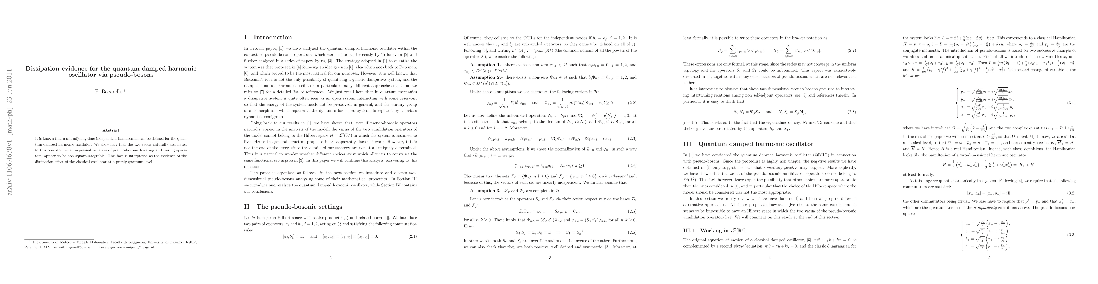 It is known that a self-adjoint, time-independent hamiltonian can be defined for the quantum damped harmonic oscillator. We show here that the two vacua naturally associated to this operator, when expressed in terms of pseudo-bosonic lowering and raising operators, appear to be non square-integrable. This fact is interpreted as the evidence of the dissipation effect of the classical oscillator at a purely quantum level.